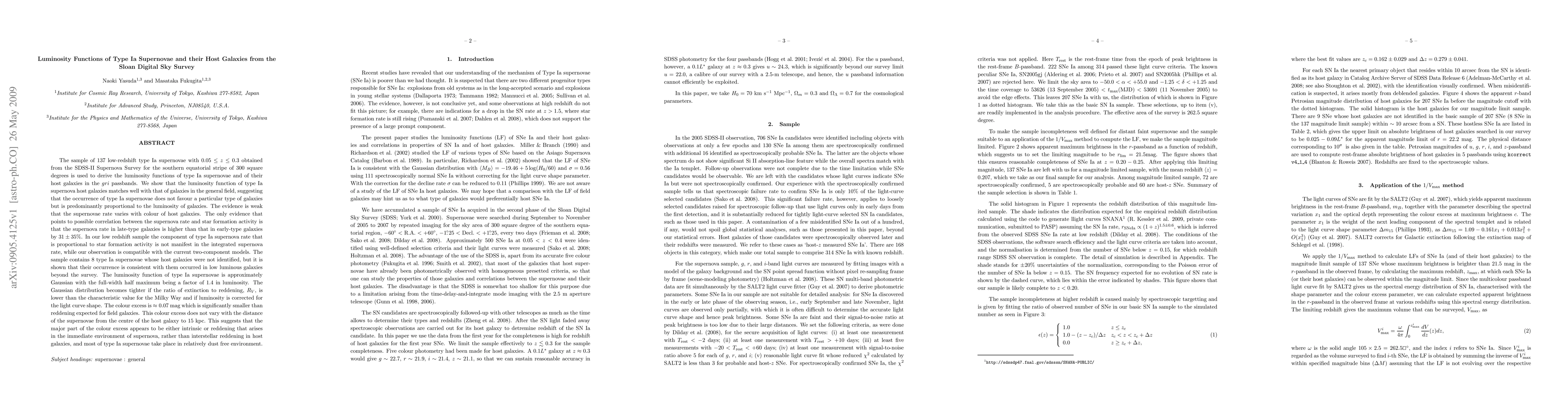 This study examines the luminosity functions of type Ia supernovae and their host galaxies using data from the Sloan Digital Sky Survey, finding that supernova rates are proportional to galaxy luminosity and that color excess is primarily due to intrinsic or local reddening.