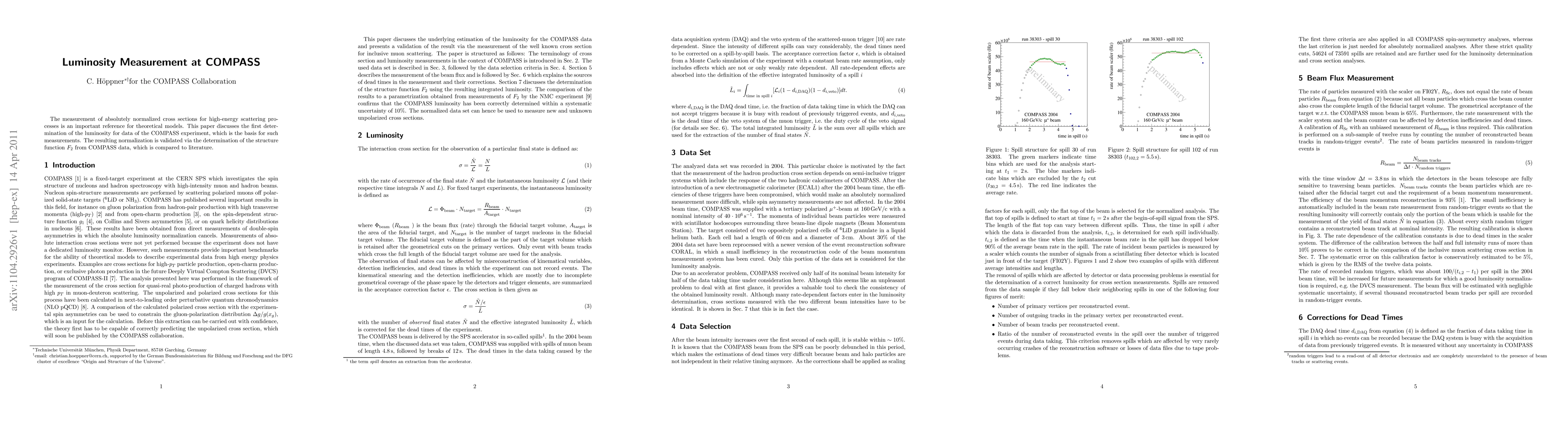 The measurement of absolutely normalized cross sections for high-energy scattering processes is an important reference for theoretical models. This paper discusses the first determination of the luminosity for data of the COMPASS experiment, which is the basis for such measurements. The resulting normalization is validated via the determination of the structure function $F_2$ from COMPASS data, which is compared to literature.