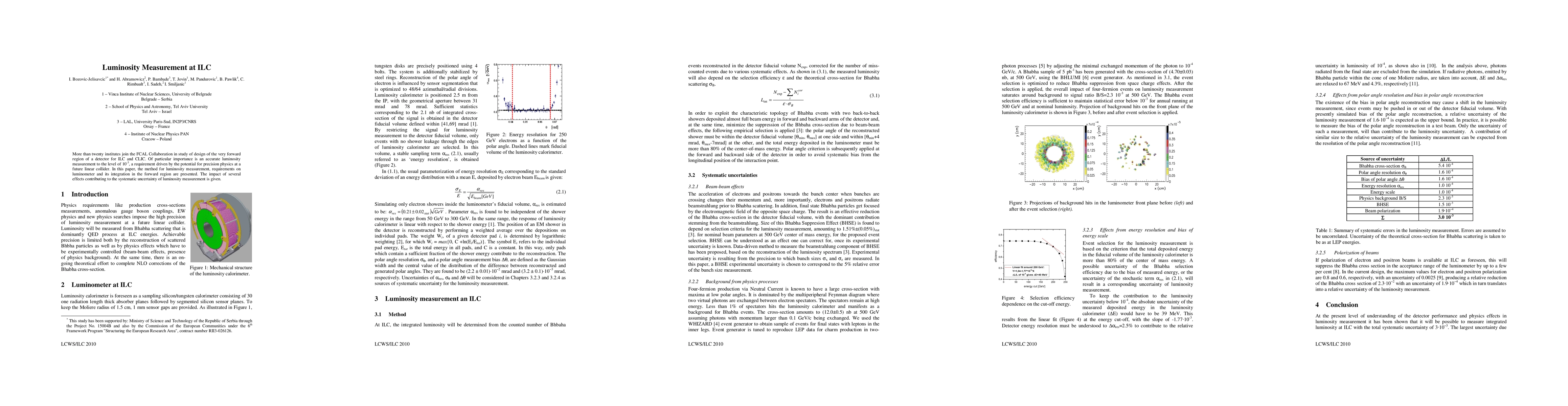 The research focuses on the design and methodology for luminosity measurement at the International Linear Collider (ILC) using Bhabha scattering events. The luminosity calorimeter is positioned 2.5 m from the interaction point with a geometric aperture between 31 mrad and 78 mrad. The method relies on reconstructing the polar angle of electrons with optimized sensor segmentation and applying an empirical selection to minimize Bhabha cross-section suppression due to beam-beam effects.