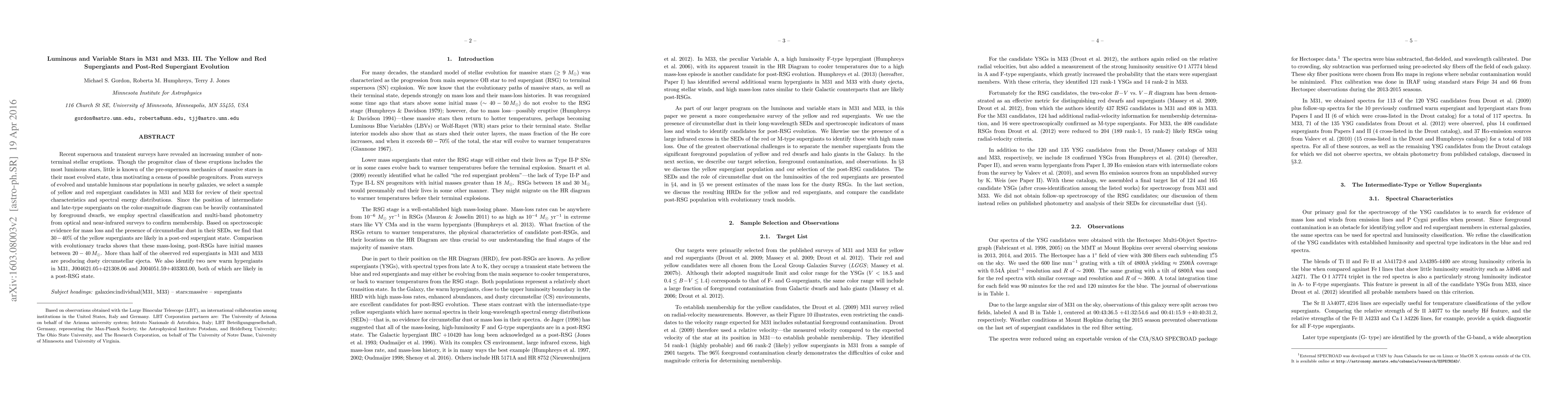 This study investigates yellow and red supergiant stars in M31 and M33, identifying $30-40\%$ of yellow supergiants as post-red supergiants with initial masses between $20-40\,M_{\odot}$. It also finds that over half of the red supergiants are producing dusty circumstellar ejecta.