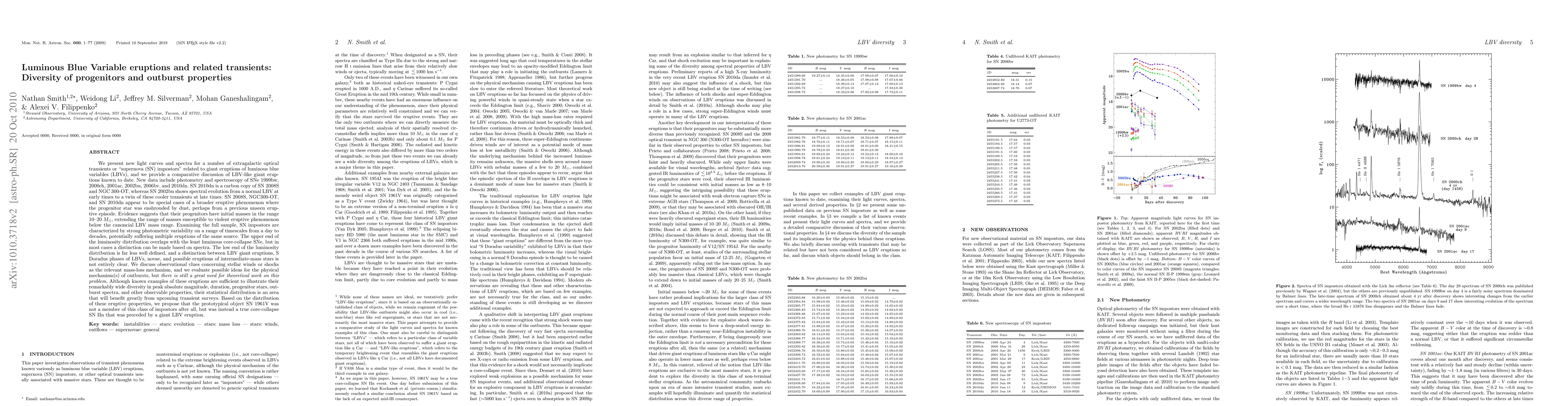 We present new light curves and spectra for a number of extragalactic optical transients or "SN impostors" related to giant eruptions of LBVs, and we provide a comparative discussion of LBV-like giant eruptions known to date. New data include photometry and spectroscopy of SNe1999bw, 2000ch, 2001ac, 2002bu, 2006bv, and 2010dn. SN2010dn resembles SN2008S and NGC 300-OT, whereas SN2002bu shows spectral evolution from a normal LBV at early times to a twin of these cooler transients at late times. SN2008S, NGC300-OT, and SN2010dn appear to be special cases of a broader eruptive phenomenon where the progenitor star was enshrouded by dust. Examining the full sample, SN impostors have range of timescales from a day to decades, potentially suffering multiple eruptions. The upper end of the luminosity distribution overlaps with the least luminous SNe. The low end of the luminosity distribution is poorly defined, and a distinction between various eruptions is not entirely clear. We discuss observational clues concerning winds or shocks as the relevant mass-loss mechanism, and we evaluate possible ideas for physical mechanisms. Although examples of these eruptions are sufficient to illustrate their diversity, their statistical distribution will benefit greatly from upcoming transient surveys. Based on the distribution of eruptions, we propose that SN1961V was not a member of this class of impostors, but was instead a true core-collapse SNIIn preceded by a giant LBV eruption. (abridged)