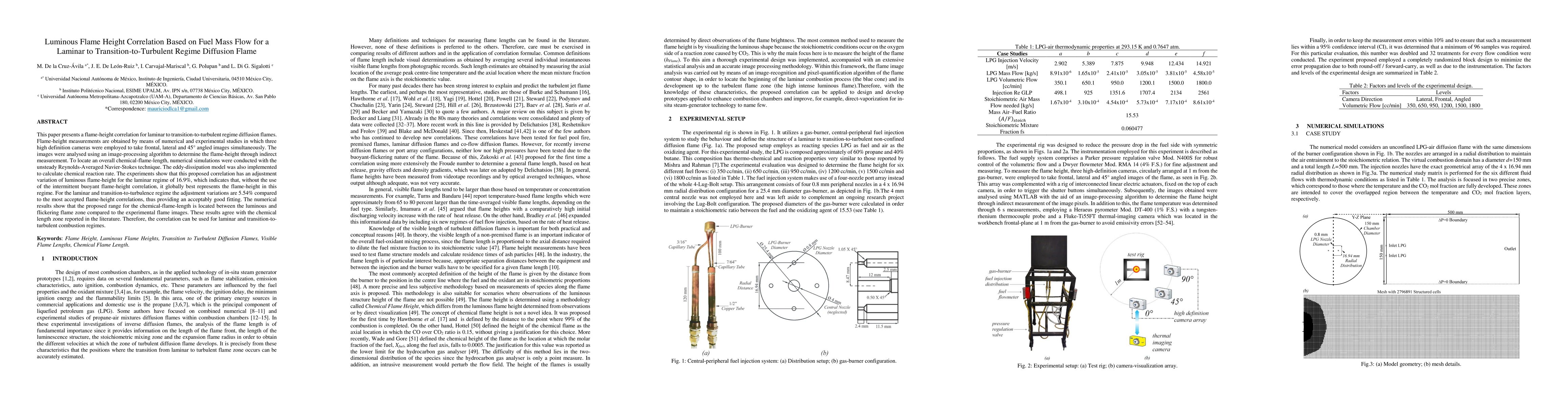 This paper proposes a new flame-height correlation for diffusion flames transitioning from laminar to turbulent regimes, validated through both numerical simulations and experimental measurements using high-definition cameras. The correlation shows good agreement with existing models, especially for the laminar regime.