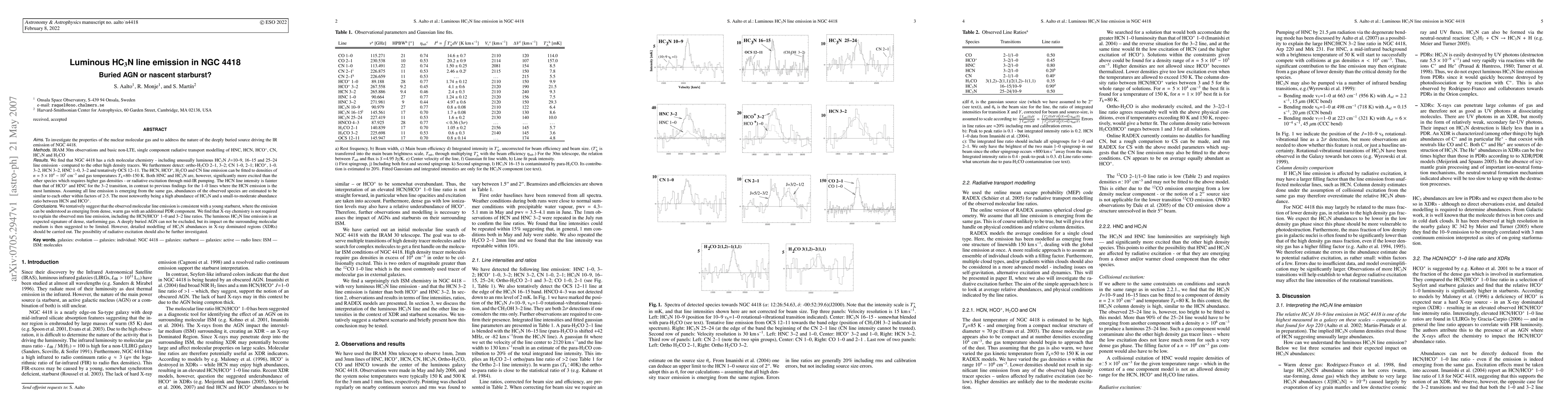 The IRAM 30m observations of NGC4418 reveal rich molecular chemistry with unusually luminous HC3N line emission, suggesting dense, warm gas indicative of a young starburst. While the presence of a buried AGN cannot be fully ruled out, the molecular line emission is more consistent with starburst activity rather than X-ray chemistry.