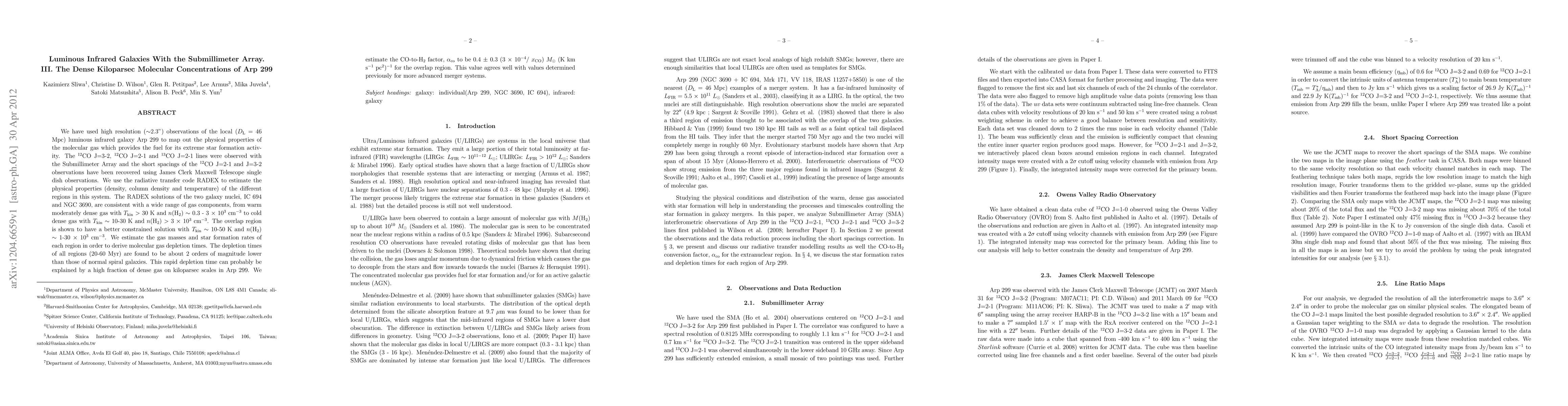 This study uses high-resolution observations of Arp 299 to map the molecular gas fueling its extreme star formation, finding dense gas concentrations in the galaxy nuclei and overlap region. The rapid gas depletion times suggest a high fraction of dense gas, supporting a CO-to-H_{2} factor of 0.4 ± 0.3.