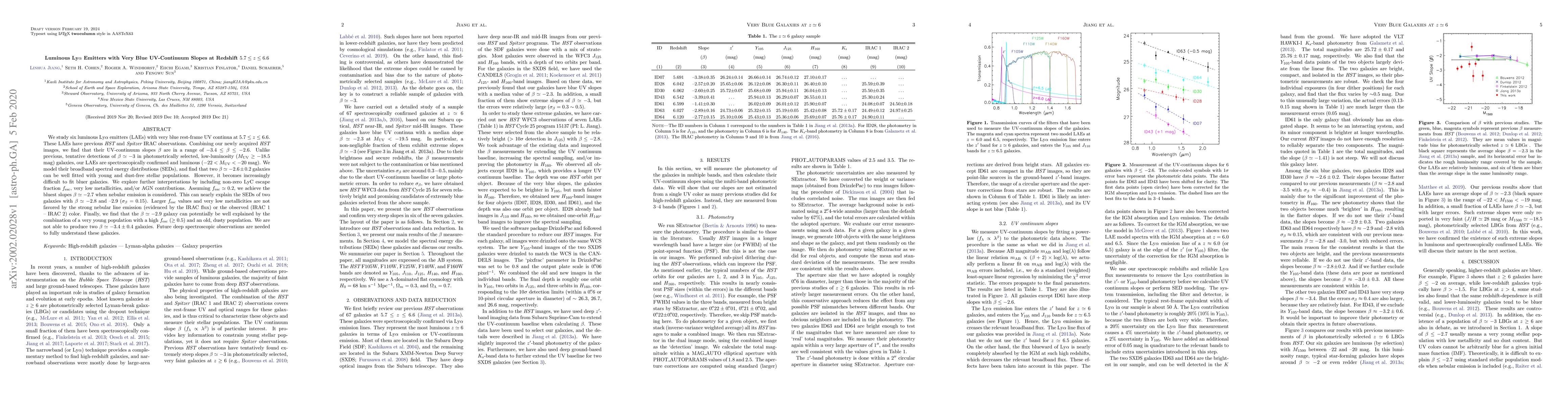 This study examines six luminous Lyman-alpha emitters (LAEs) with extremely blue UV continua at redshifts 5.7 to 6.6. Utilizing HST and Spitzer IRAC observations, researchers found UV-continuum slopes ((eta)) ranging from -3.4 to -2.6. Their SED modeling suggests young, dust-free stellar populations can explain two galaxies with (eta simeq -2.6). Bluer galaxies pose fitting challenges, but including non-zero LyC escape fractions, low metallicities, and/or AGN contributions offers potential solutions. The bluest slopes ((eta simeq -2.9)) can be explained by young populations with high LyC escape fractions and old, dusty populations. However, two galaxies with (eta simeq -3.4) remain unexplained, necessitating further deep spectroscopic observations.