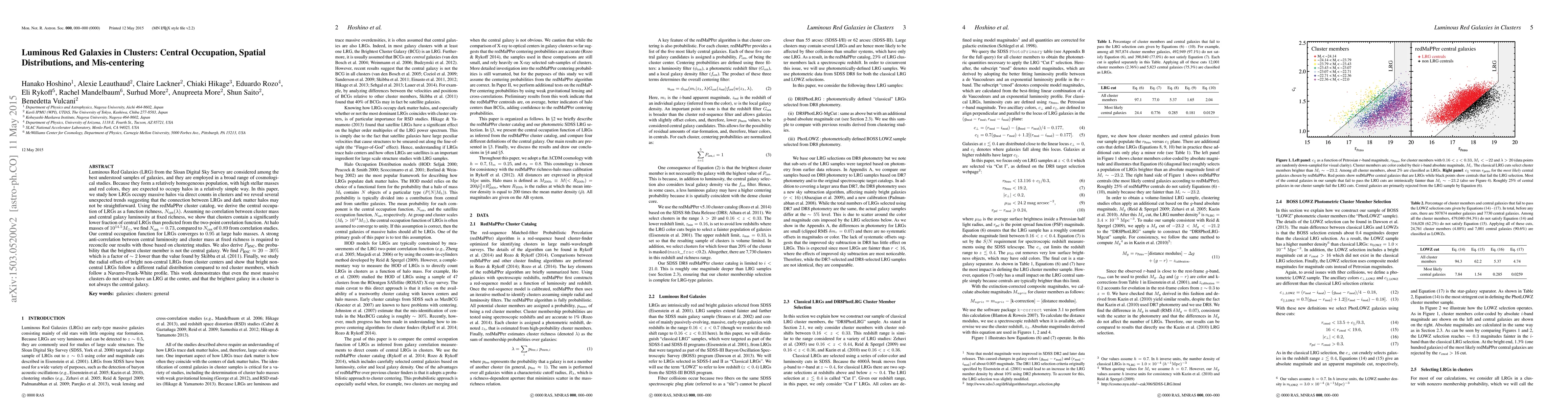 This paper investigates the central occupation and spatial distributions of Luminous Red Galaxies (LRGs) in clusters, finding that they occupy central positions less frequently than predicted by clustering studies. It reveals that the brightest galaxy in a cluster is not always the central LRG, and that bright non-central LRGs follow a different radial distribution than other red cluster members.