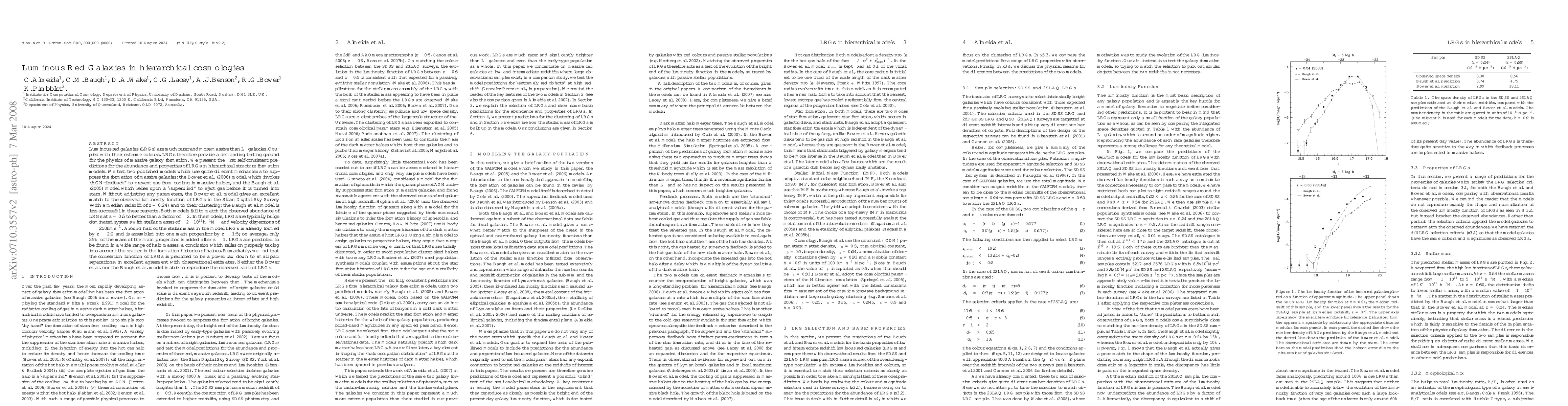 Luminous red galaxies (LRGs) are much rarer and more massive than L* galaxies. Coupled with their extreme colours, LRGs therefore provide a demanding testing ground for the physics of massive galaxy formation. We present the first self-consistent predictions for the abundance and properties of LRGs in hierarchical structure formation models. We test two published models which use quite different mechanisms to suppress the formation of massive galaxies: the Bower et al. (2006) model, which invokes ``AGN-feedback'' to prevent gas from cooling in massive haloes, and the Baugh et al. (2005) model which relies upon a ``superwind'' to eject gas before it is turned into stars. Without adjusting any parameters, the Bower et al. model gives an excellent match to the observed luminosity function of LRGs in the SDSS (with a median redshift of z=0.24) and to their clustering; the Baugh et al. model is less successful in these respects. Both models fail to match the observed abundance of LRGs at z=0.5 to better than a factor of ~2. In the models, LRGs are typically bulge dominated systems with M* of ~2x10^11 h^{-1} M_sun and velocity dispersions of ~250 km s^{-1}. Around half of the stellar mass in the model LRGs is already formed by z~2.2 and is assembled into one main progenitor by z~1.5; on average, only 25% of the mass of the main progenitor is added after z~1. LRGs are predicted to be found in a wide range of halo masses, a conclusion which relies on properly taking into account the scatter in the formation histories of haloes. Remarkably, we find that the correlation function of LRGs is predicted to be a power law down to small pair separations, in excellent agreement with observational estimates. Neither the Bower et al. nor the Baugh et al. model is able to reproduce the observed radii of LRGs.
