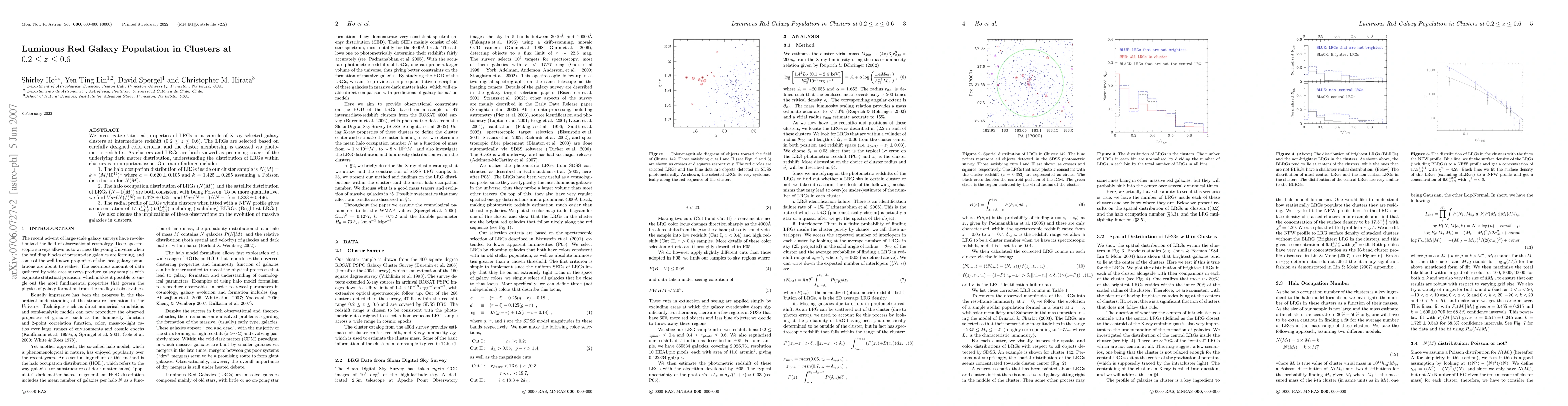 is assessed via photometric redshifts. As clusters and LRGs are both viewed as