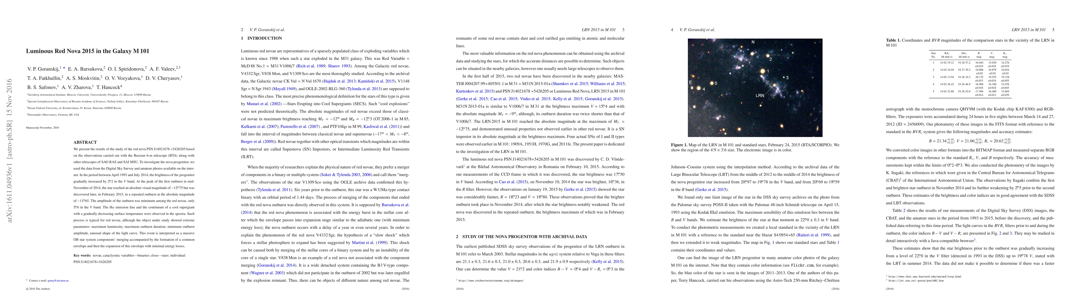 We present the results of the study of the red nova PSN J14021678+5426205 based on the observations carried out with the Russian 6-m telescope (BTA) along with other telescopes of SAO RAS and SAI MSU. To investigate the nova progenitor, we used the data from the Digital Sky Survey and amateur photos available on the internet. In the period between April 1993 and July 2014, the brightness of the progenitor gradually increased by 2.2 mag in the V band. At the peak of the first outburst in mid-November of 2014, the star reached an absolute visual magnitude of -12.75 mag but was discovered later, in February 2015, in a repeated outburst at the absolute magnitude of -11.65 mag. The amplitude of the outburst was minimum among the red novae, only 5.6 mag in the V band. The H alpha emission line and the continuum of a cool supergiant with a gradually decreasing surface temperature were observed in the spectra. Such process is typical for red novae, although the object under study showed extreme parameters: maximum luminosity, maximum outburst duration, minimum outburst amplitude, unusual shape of the light curve. This event is interpreted as a massive OB star system components merging accompanied by the formation of a common envelope and then the expansion of this envelope with minimal energy losses.