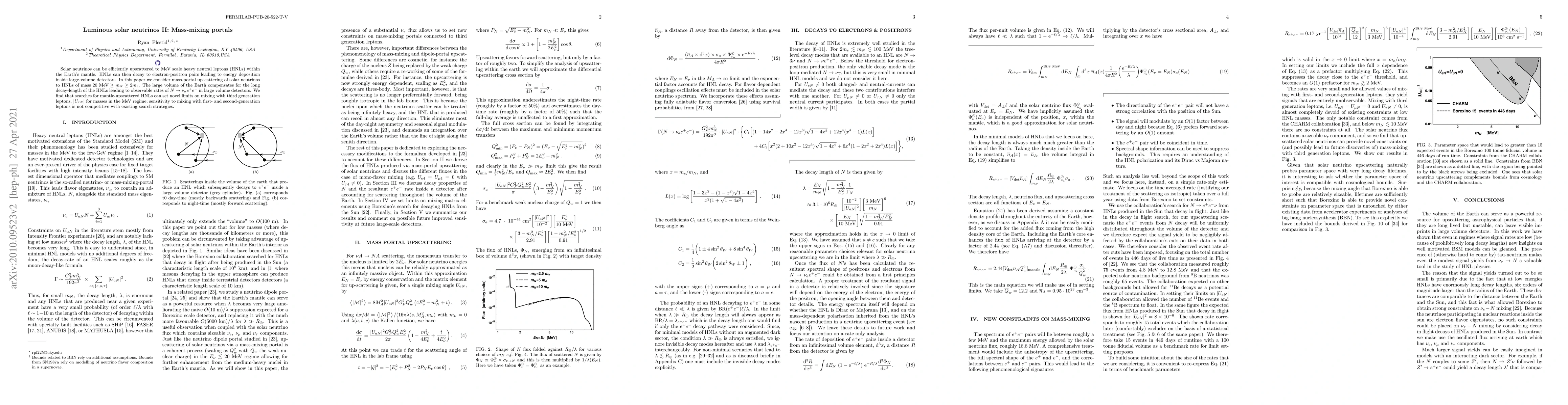 Solar neutrinos can be efficiently upscattered to MeV scale heavy neutral leptons (HNLs) within the Earth's mantle. HNLs can then decay to electron-positron pairs leading to energy deposition inside large-volume detectors. In this paper we consider mass-portal upscattering of solar neutrinos to HNLs of mass 20 MeV $\geq m_N \geq 2 m_e$. The large volume of the Earth compensates for the long decay-length of the HNLs leading to observable rates of $N\rightarrow \nu_\alpha e^+e^-$ in large volume detectors. We find that searches for mantle-upscattered HNLs can set the novel limits on mixing with third generation leptons, $|U_{\tau N}|$ for masses in the MeV regime; sensitivity to mixing with first- and second-generation leptons is not competitive with existing search strategies.