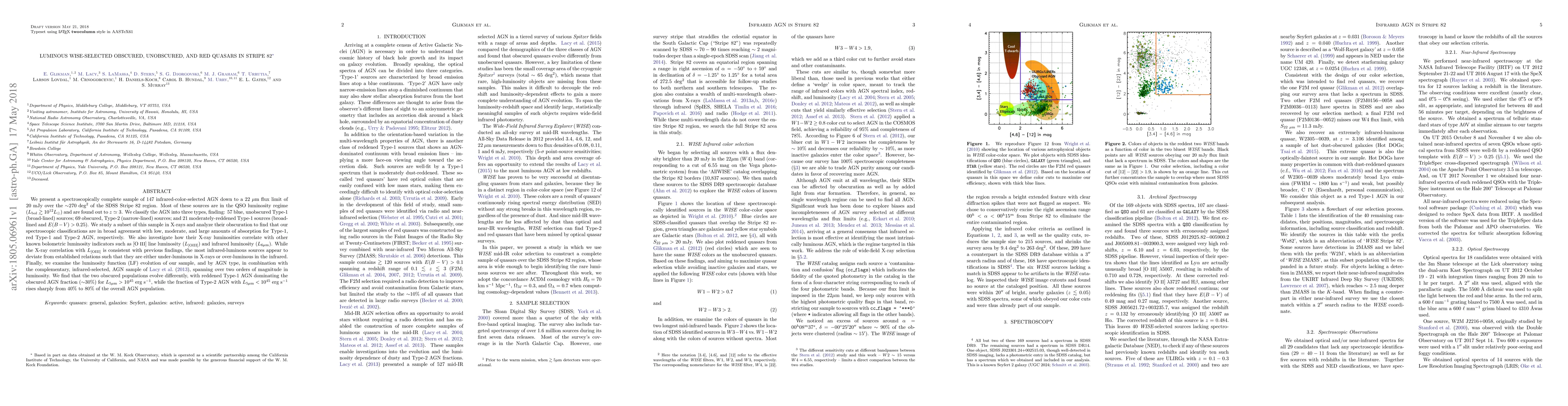 We present a spectroscopically complete sample of 147 infrared-color-selected AGN down to a 22 $\mu$m flux limit of 20 mJy over the $\sim$270 deg$^2$ of the SDSS Stripe 82 region. Most of these sources are in the QSO luminosity regime ($L_{\rm bol} \gtrsim 10^{12} L_\odot$) and are found out to $z\simeq3$. We classify the AGN into three types, finding: 57 blue, unobscured Type-1 (broad-lined) sources; 69 obscured, Type-2 (narrow-lined) sources; and 21 moderately-reddened Type-1 sources (broad-lined and $E(B-V) > 0.25$). We study a subset of this sample in X-rays and analyze their obscuration to find that our spectroscopic classifications are in broad agreement with low, moderate, and large amounts of absorption for Type-1, red Type-1 and Type-2 AGN, respectively. We also investigate how their X-ray luminosities correlate with other known bolometric luminosity indicators such as [O III] line luminosity ($L_{\rm [OIII]}$) and infrared luminosity ($L_{6 \mu{\rm m}}$). While the X-ray correlation with $L_{\rm [OIII]}$ is consistent with previous findings, the most infrared-luminous sources appear to deviate from established relations such that they are either under-luminous in X-rays or over-luminous in the infrared. Finally, we examine the luminosity function (LF) evolution of our sample, and by AGN type, in combination with the complementary, infrared-selected, AGN sample of Lacy et al. (2013), spanning over two orders of magnitude in luminosity. We find that the two obscured populations evolve differently, with reddened Type-1 AGN dominating the obscured AGN fraction ($\sim$30%) for $L_{5 \mu{\rm m}} > 10^{45}$ erg s$^{-1}$, while the fraction of Type-2 AGN with $L_{5 \mu{\rm m}} < 10^{45}$ erg s$^{-1}$ rises sharply from 40% to 80% of the overall AGN population.