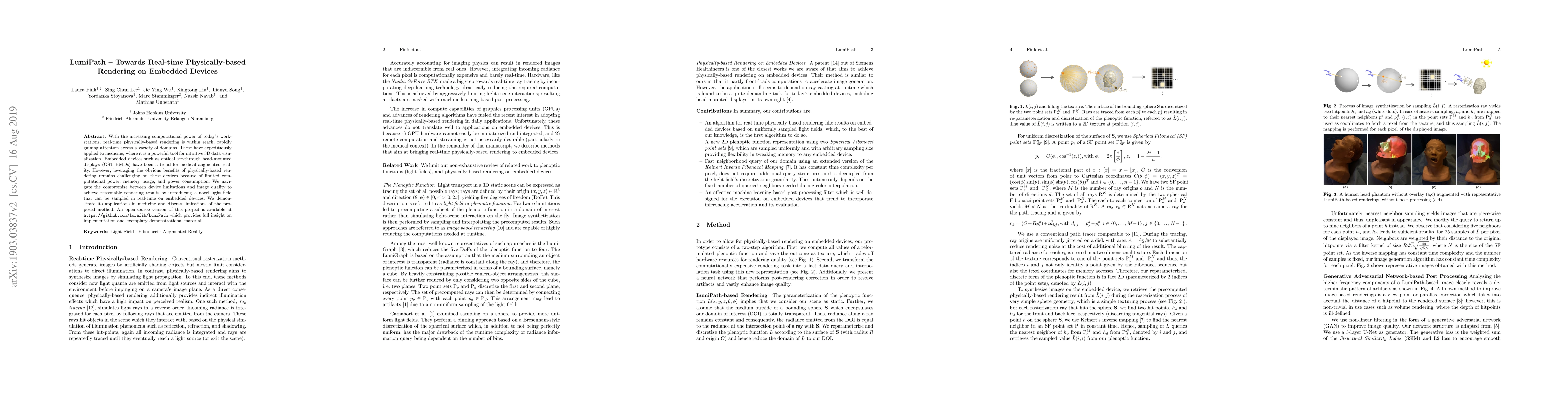 This paper introduces LumiPath, a novel light field technique that enables real-time physically-based rendering on embedded devices, overcoming limitations such as limited computational power and memory usage in medical augmented reality applications.