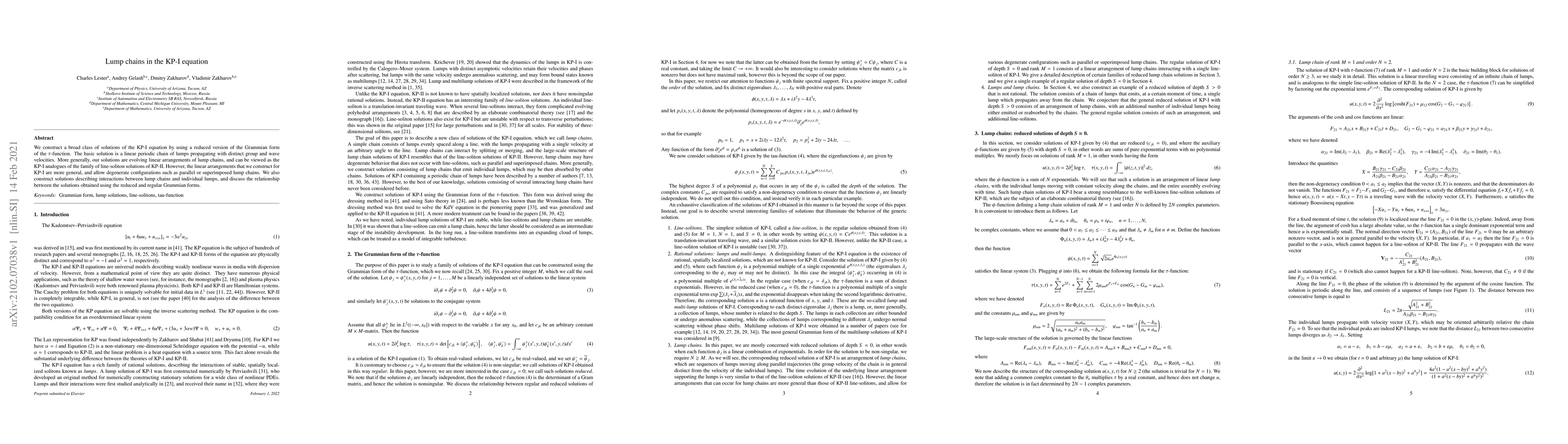 This paper presents a broad class of solutions for the KP-I equation, constructing linear periodic chains of lumps via a reduced Grammian form, and explores evolving linear arrangements of these lump chains, including degenerate configurations and interactions. The solutions are analogous to line-soliton solutions in KP-II but allow for more general linear arrangements.