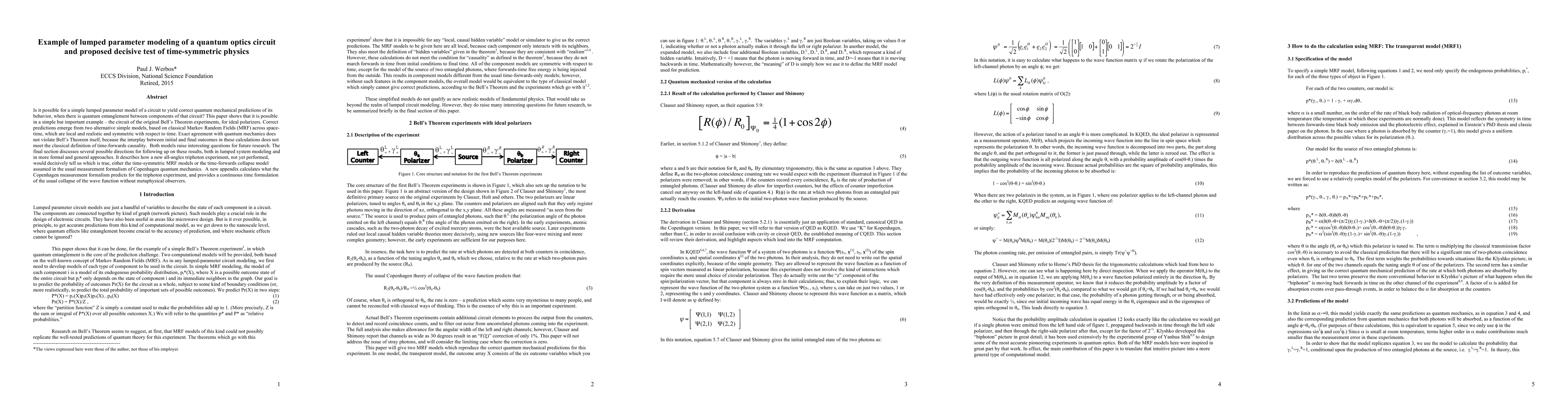 This paper showed how a simple lumped parameter model of a circuit can yield correct quantum mechanical predictions of its behavior, even when there is quantum entanglement between components of that circuit. It addresses an important example, the circuit of the original Bell's Theorem experiments for ideal polarizers. Correct predictions emerge from two alternative simple but time-symmetric models based on classical Markov Random Field across space time. Exact agreement here does not violate Bell's Theorem itself, because the interplay between initial and final outcomes in these calculations does not fall within the CHSH definition of time forwards causality. Both models raise interesting questions for future research. The final section discusses several possible directions for following up on these results, both in lumped system modeling and in more general approaches. The final section proposed a new experiment with three-photon entanglement which could tell us which is true, local realistic MRF models and time-symmetric physics, or conventional predictions assuming the usual collapse of the wave function. The appendix worked out what the conventional predictions would be for the proposed experiment, and also gives a simple master equation version of the collapse assumption which does not involve metaphysical observers. Section A.4 gives the prediction for the new models.
