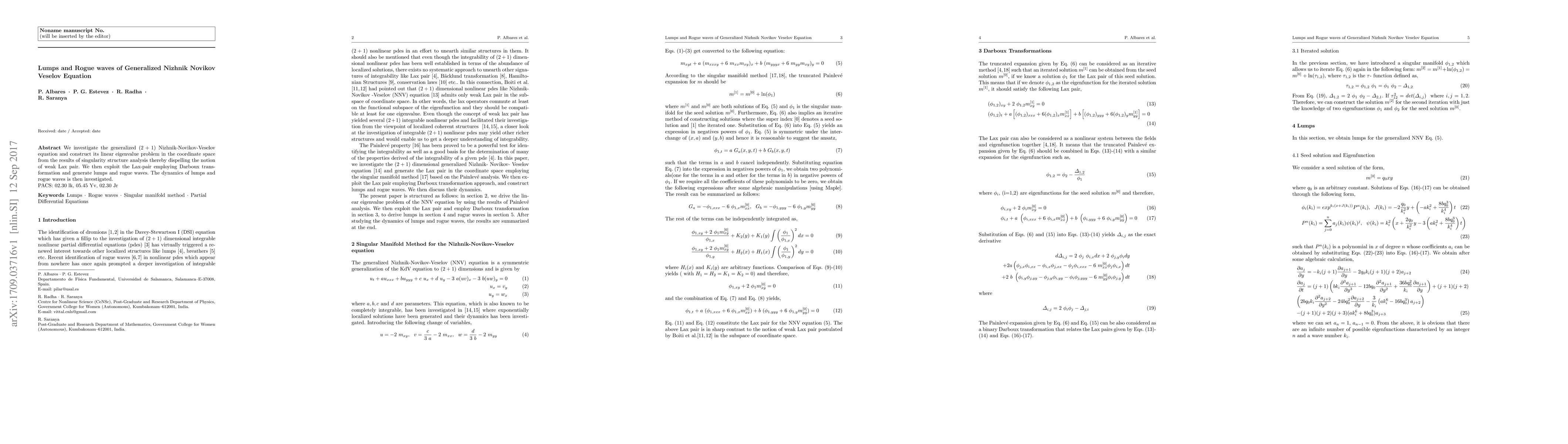 This paper explores the generalized (2 + 1) Nizhnik-Novikov-Veselov equation, constructing its linear eigenvalue problem and generating lumps and rogue waves using a Lax pair and Darboux transformation, while investigating their dynamics.