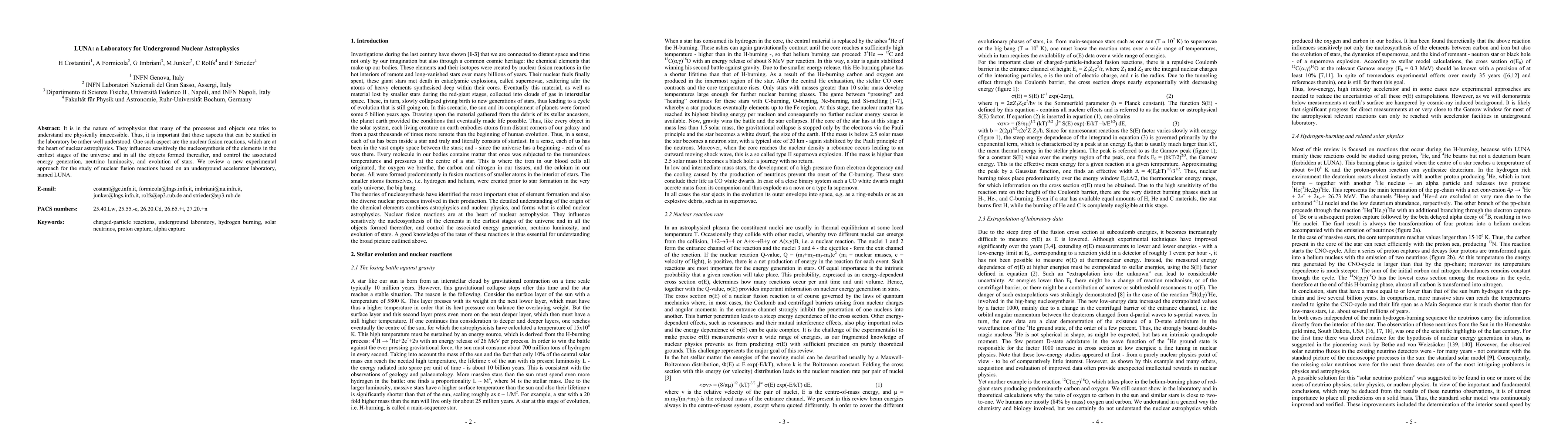 LUNA is an underground laboratory designed to study nuclear fusion reactions essential for understanding nucleosynthesis and stellar evolution. This approach allows for precise measurements of nuclear processes that are otherwise inaccessible, contributing significantly to nuclear astrophysics.
