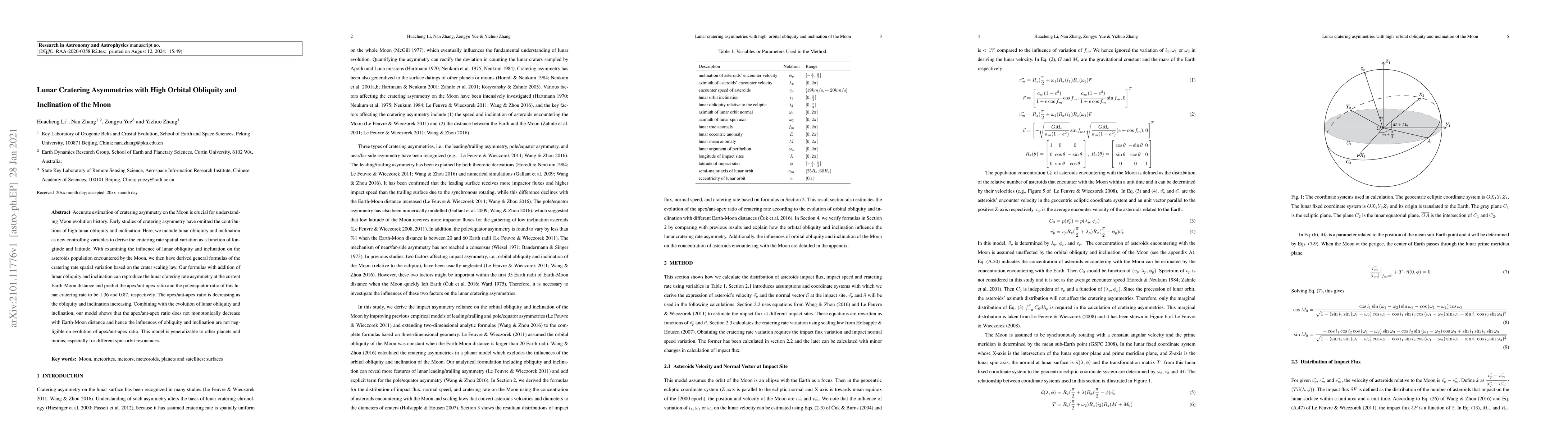 This study introduces lunar obliquity and inclination as key factors in estimating cratering asymmetry on the Moon, deriving new formulas for cratering rate spatial variation. The model predicts an apex/ant-apex ratio of 1.36 and a pole/equator ratio of 0.87, showing that these ratios are influenced by changes in obliquity and inclination, thus impacting lunar evolution history.