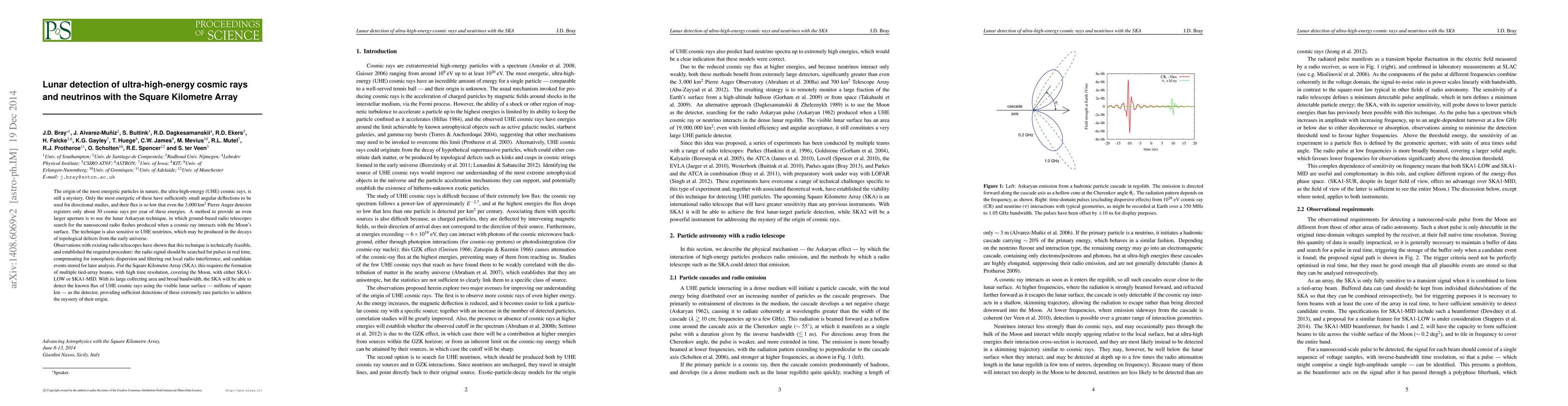 This paper proposes using the Square Kilometre Array (SKA) to detect ultra-high-energy cosmic rays and neutrinos via the lunar Askaryan technique, which involves searching for radio flashes from cosmic ray interactions with the Moon's surface. The SKA's large collecting area and bandwidth will enable the detection of these rare particles, potentially solving the mystery of their origin.