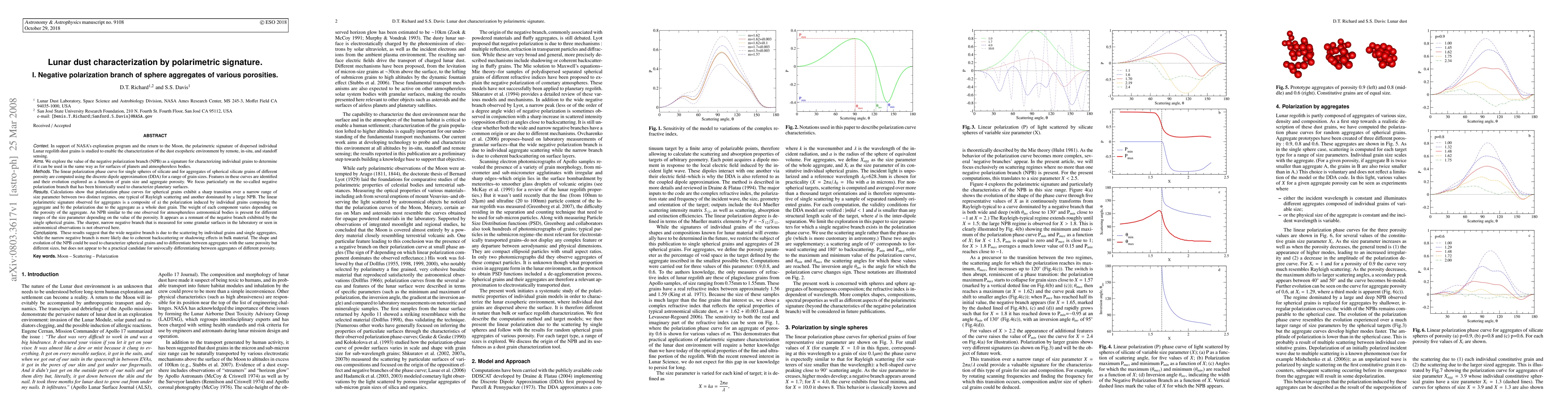 This paper investigates the polarimetric signature of lunar dust grains, focusing on the negative polarization branch (NPB) to characterize dust aggregates of varying porosities. The study finds that NPB can be used to distinguish between different scattering regimes and that the linear polarimetric signature of aggregates is a composite of individual grains' and the aggregate's polarization effects, with porosity significantly influencing these components.