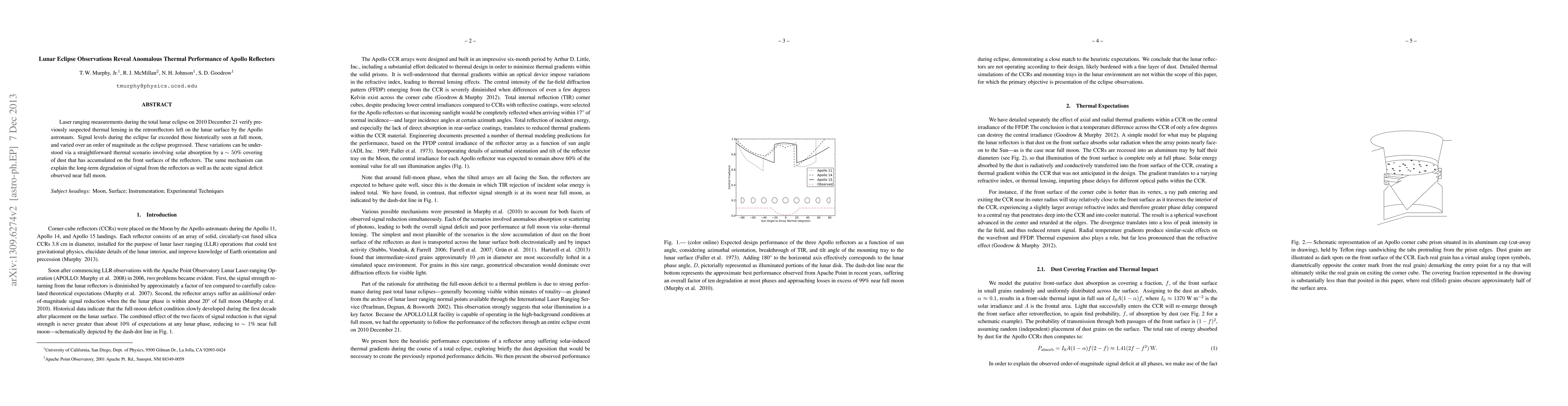 This study confirms thermal lensing in Apollo lunar reflectors via laser ranging during the 2010 December 21 total lunar eclipse, revealing signal levels far exceeding historical norms. The observed signal variations are attributed to dust accumulation on the reflectors, explaining both their long-term degradation and acute signal deficits.