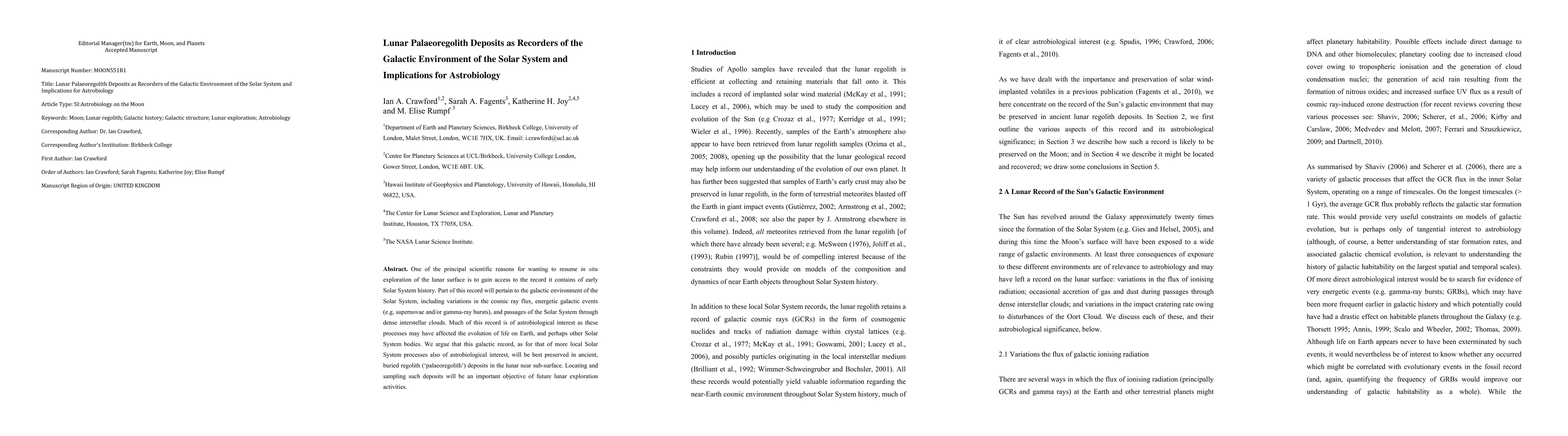 One of the principal scientific reasons for wanting to resume in situ exploration of the lunar surface is to gain access to the record it contains of early Solar System history. Part of this record will pertain to the galactic environment of the Solar System, including variations in the cosmic ray flux, energetic galactic events (e.g, supernovae and/or gamma-ray bursts), and passages of the Solar System through dense interstellar clouds. Much of this record is of astrobiological interest as these processes may have affected the evolution of life on Earth, and perhaps other Solar System bodies. We argue that this galactic record, as for that of more local Solar System processes also of astrobiological interest, will be best preserved in ancient, buried regolith ('palaeoregolith') deposits in the lunar near sub-surface. Locating and sampling such deposits will be an important objective of future lunar exploration activities.