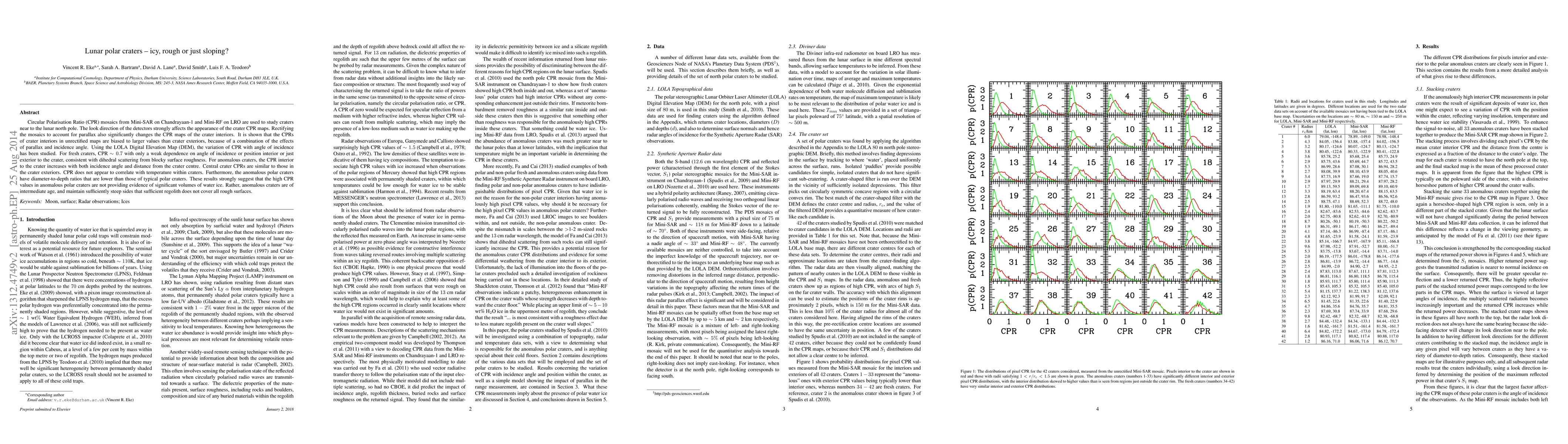 Circular Polarisation Ratio (CPR) mosaics from Mini-SAR on Chandrayaan-1 and Mini-RF on LRO are used to study craters near to the lunar north pole. The look direction of the detectors strongly affects the appearance of the crater CPR maps. Rectifying the mosaics to account for parallax also significantly changes the CPR maps of the crater interiors. It is shown that the CPRs of crater interiors in unrectified maps are biased to larger values than crater exteriors, because of a combination of the effects of parallax and incidence angle. Using the LOLA Digital Elevation Map (DEM), the variation of CPR with angle of incidence has been studied. For fresh craters, CPR~0.7 with only a weak dependence on angle of incidence or position interior or just exterior to the crater, consistent with dihedral scattering from blocky surface roughness. For anomalous craters, the CPR interior to the crater increases with both incidence angle and distance from the crater centre. Central crater CPRs are similar to those in the crater exteriors. CPR does not appear to correlate with temperature within craters. Furthermore, the anomalous polar craters have diameter-to-depth ratios that are lower than those of typical polar craters. These results strongly suggest that the high CPR values in anomalous polar craters are not providing evidence of significant volumes of water ice. Rather, anomalous craters are of intermediate age, and maintain sufficiently steep walls that deep regolith does not cover all rough surfaces.