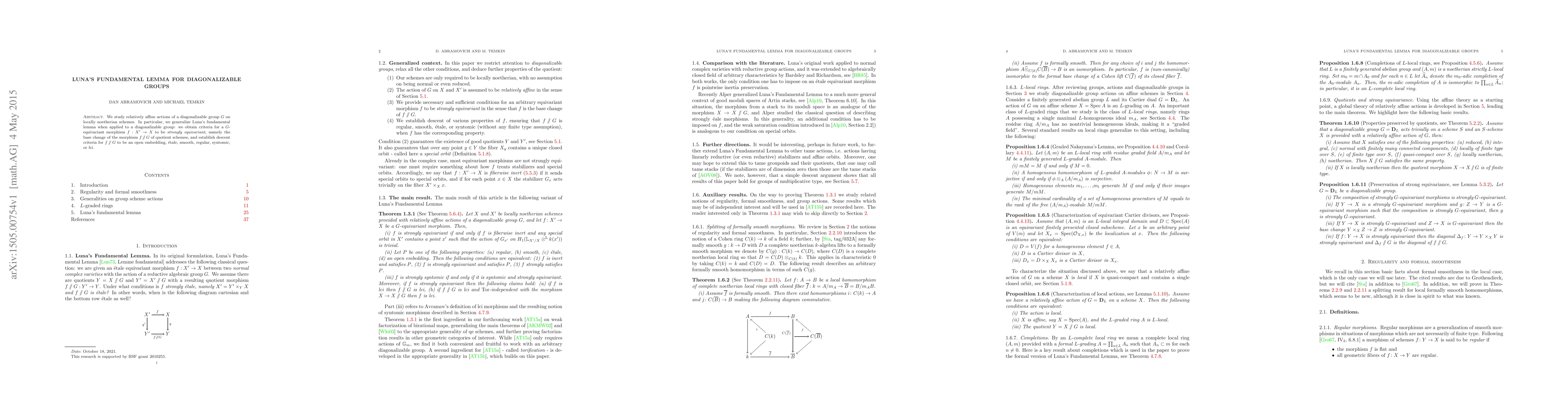This paper generalizes Luna's fundamental lemma for diagonalizable groups, providing criteria for $G$-equivariant morphisms to be strongly equivariant and establishing descent criteria for various properties of quotient morphisms in the context of relatively affine actions on locally noetherian schemes.