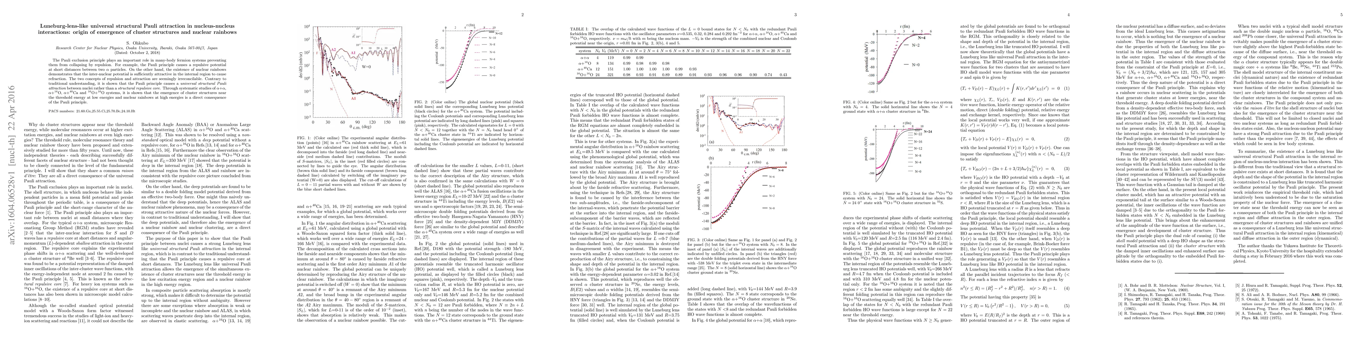 This paper demonstrates that the Pauli exclusion principle leads to a universal structural Pauli attraction in nucleus-nucleus interactions, resolving the apparent contradiction between repulsion and attraction. It shows that this attraction results in the emergence of cluster structures and nuclear rainbows.