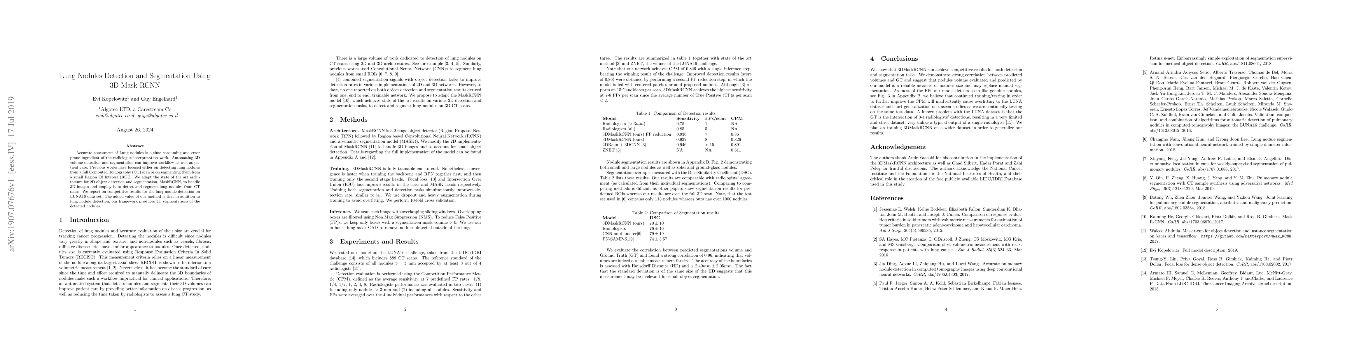 This paper adapts the 2D Mask-RCNN architecture for 3D lung nodule detection and segmentation in CT scans, achieving competitive results on the LUNA16 dataset. The method not only detects nodules but also provides detailed 3D segmentations, enhancing both workflow efficiency and patient care.