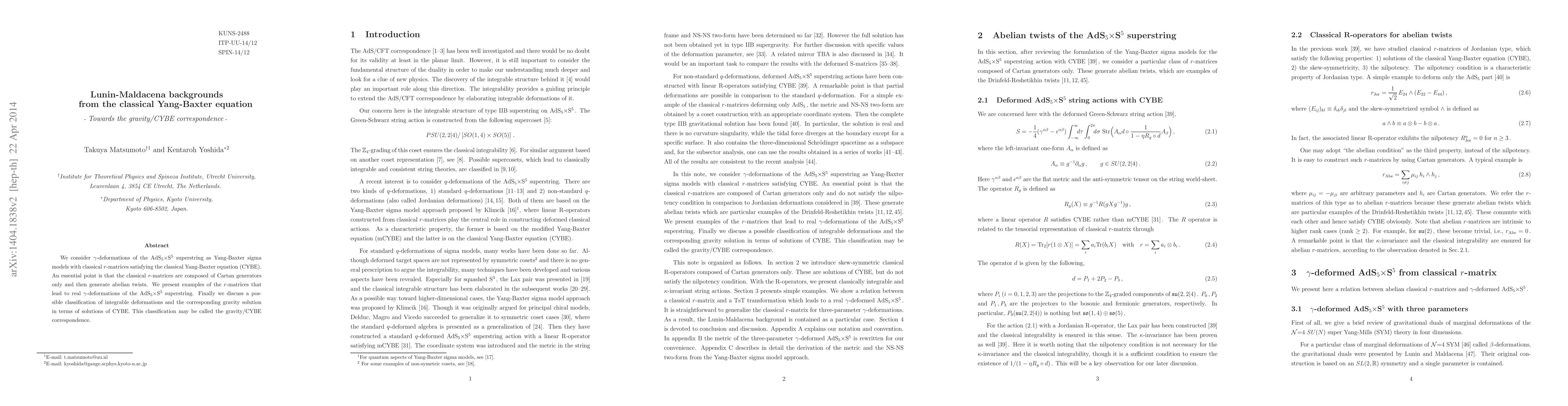 We consider \gamma-deformations of the AdS_5xS^5 superstring as Yang-Baxter sigma models with classical r-matrices satisfying the classical Yang-Baxter equation (CYBE). An essential point is that the classical r-matrices are composed of Cartan generators only and then generate abelian twists. We present examples of the r-matrices that lead to real \gamma-deformations of the AdS_5xS^5 superstring. Finally we discuss a possible classification of integrable deformations and the corresponding gravity solution in terms of solutions of CYBE. This classification may be called the gravity/CYBE correspondence.