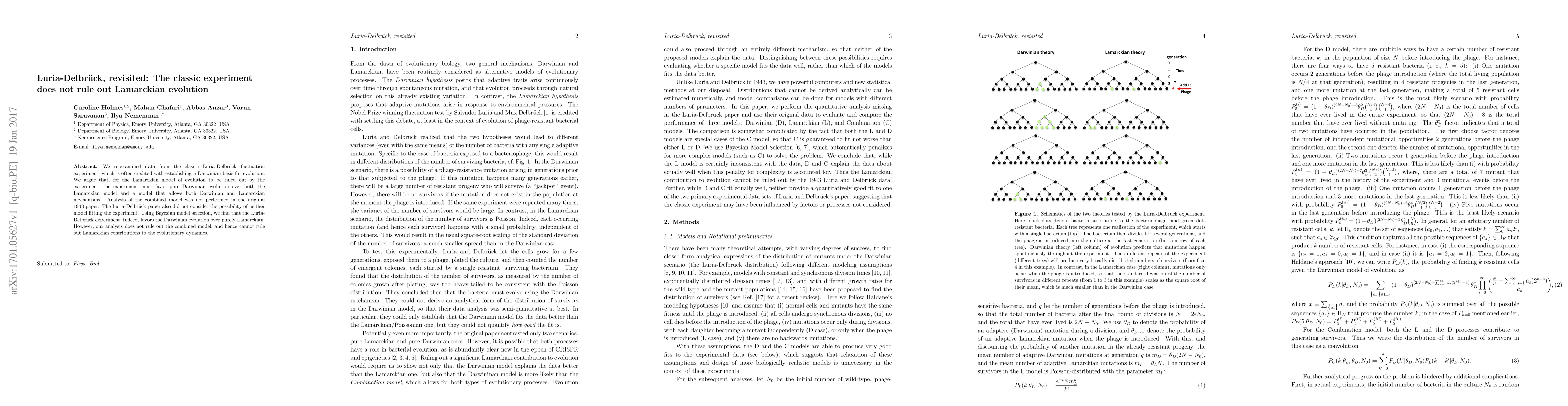 This paper re-examines the Luria-Delbruck experiment, traditionally seen as supporting Darwinian evolution, and finds that while it favors Darwinian over purely Lamarckian models, it does not rule out a combined model that includes both mechanisms, thus leaving room for Lamarckian evolution.