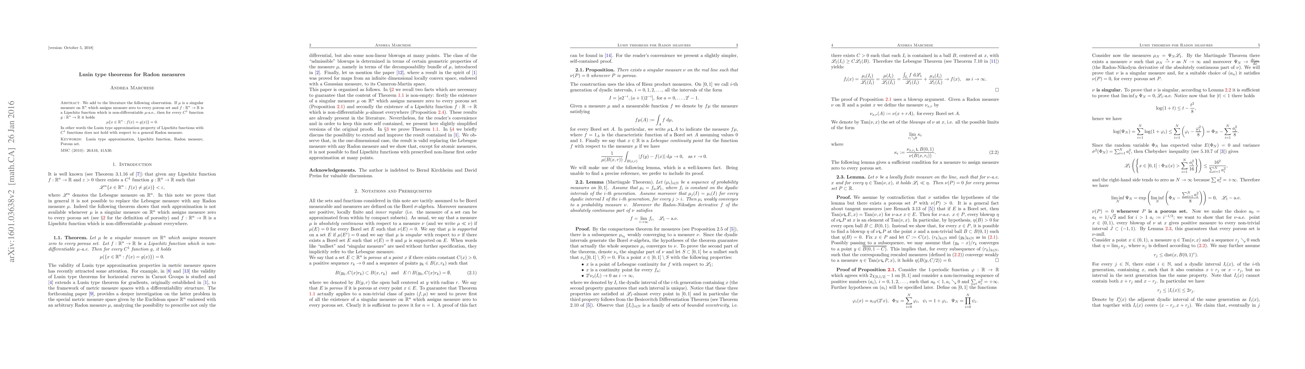 We add to the literature the following observation. If $\mu$ is a singular measure on $\mathbb{R}^n$ which assigns measure zero to every porous set and $f:\mathbb{R}^n\rightarrow\mathbb{R}$ is a Lipschitz function which is non-differentiable $\mu$-a.e. then for every $C^1$ function $g:\mathbb{R}^n\rightarrow\mathbb{R}$ it holds $$\mu\{x\in\mathbb{R}^n: f(x)=g(x)\}=0.$$ In other words the Lusin type approximation property of Lipschitz functions with $C^1$ functions does not hold with respect to a general Radon measure.
