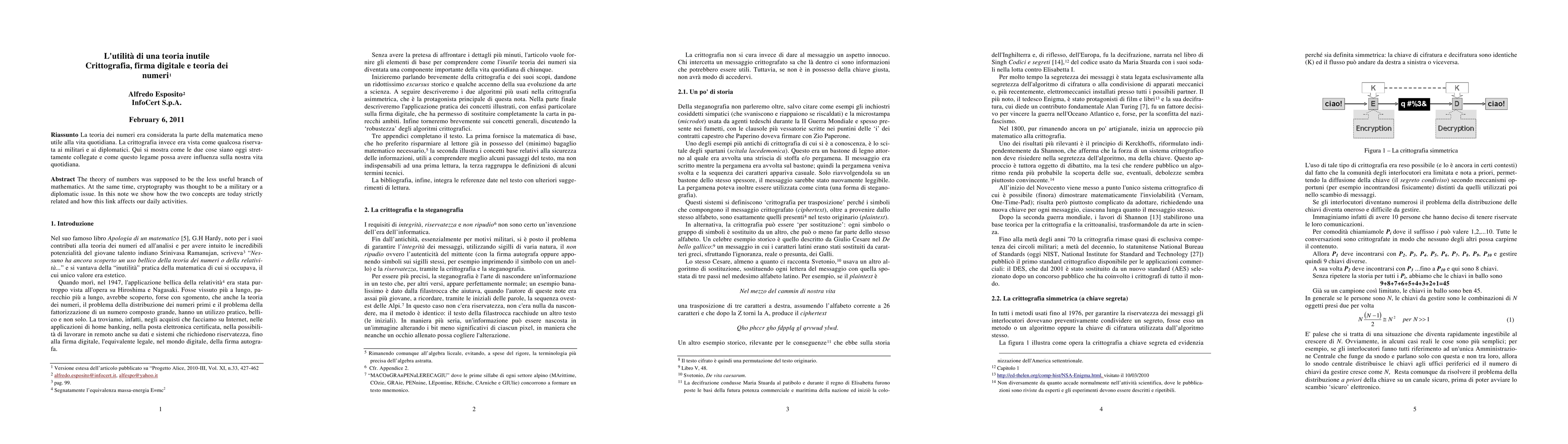 The theory of numbers was supposed to be the less useful branch of mathematics. At the same time, cryptography was thought to be a military or a diplomatic issue. In this note we show how the two concepts are today strictly related and how this link affects our daily activities.