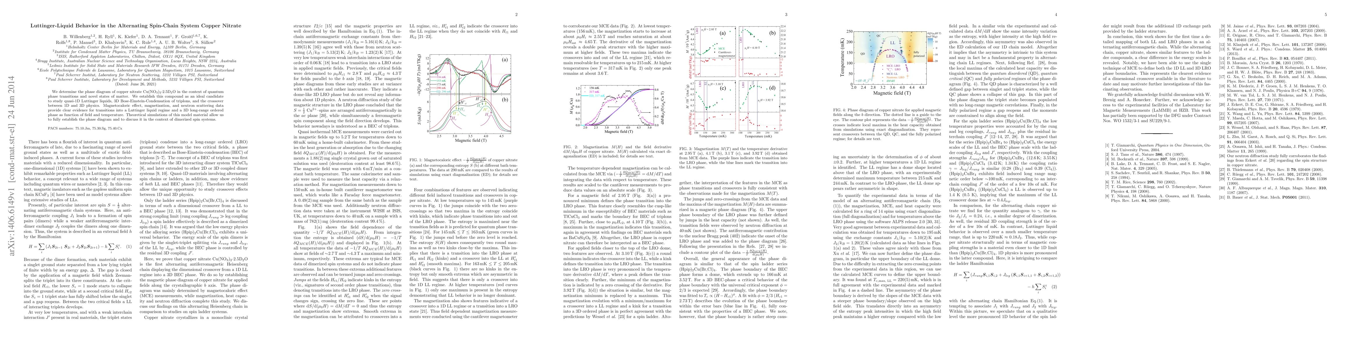 We determine the phase diagram of copper nitrate Cu(NO$_3$)$_2\cdot$2.5D$_2$O in the context of quantum phase transitions and novel states of matter. We establish this compound as an ideal candidate to study quasi-1D Luttinger liquids, 3D Bose-Einstein-Condensation of triplons, and the crossover between 1D and 3D physics. Magnetocaloric effect, magnetization, and neutron scattering data provide clear evidence for transitions into a Luttinger liquid regime and a 3D long-range ordered phase as function of field and temperature. Theoretical simulations of this model material allow us to fully establish the phase diagram and to discuss it in the context of dimerized spin systems.