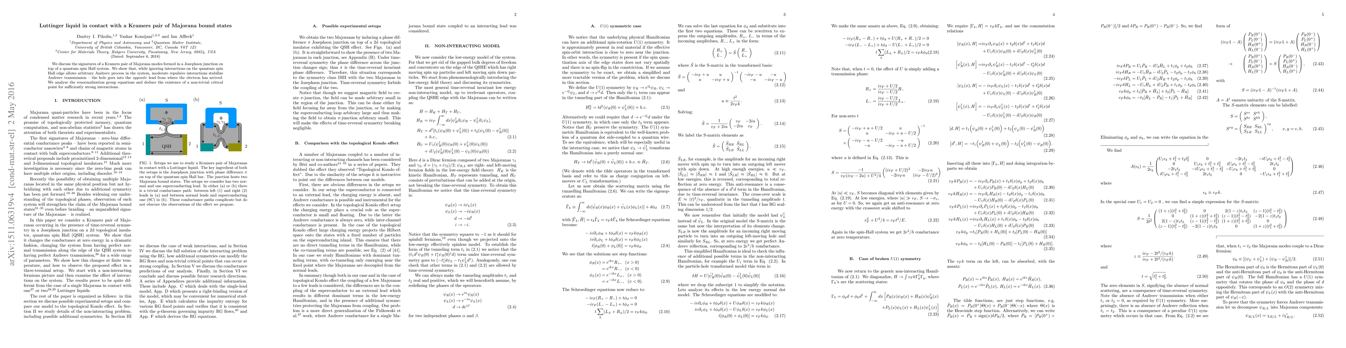 We discuss the signatures of a Kramers pair of Majorana modes formed in a Josephson junction on top of a quantum spin Hall system. We show that, while ignoring interactions on the quantum spin Hall edge allows arbitrary Andreev process in the system, moderate repulsive interactions stabilize Andreev transmission - the hole goes into the opposite lead from where the electron has arrived. We analyze the renormalization group equations and deduce the existence of a non-trivial critical point for sufficiently strong interactions.