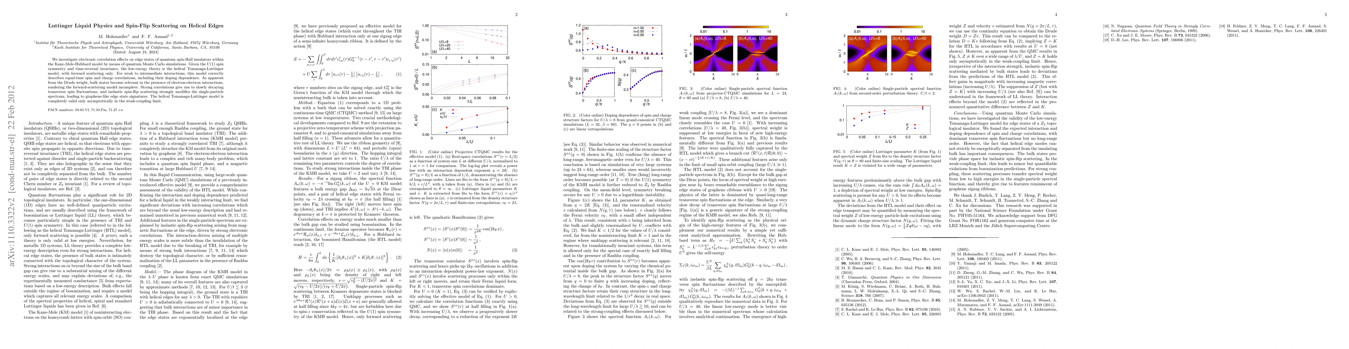 This paper explores the impact of electronic correlations on quantum spin-Hall insulators' edge states using quantum Monte Carlo simulations. While the helical Tomanaga-Luttinger model accurately describes spin and charge correlations at weak to intermediate interactions, strong correlations lead to significant modifications in the single-particle spectrum, revealing graphene-like edge state signatures.