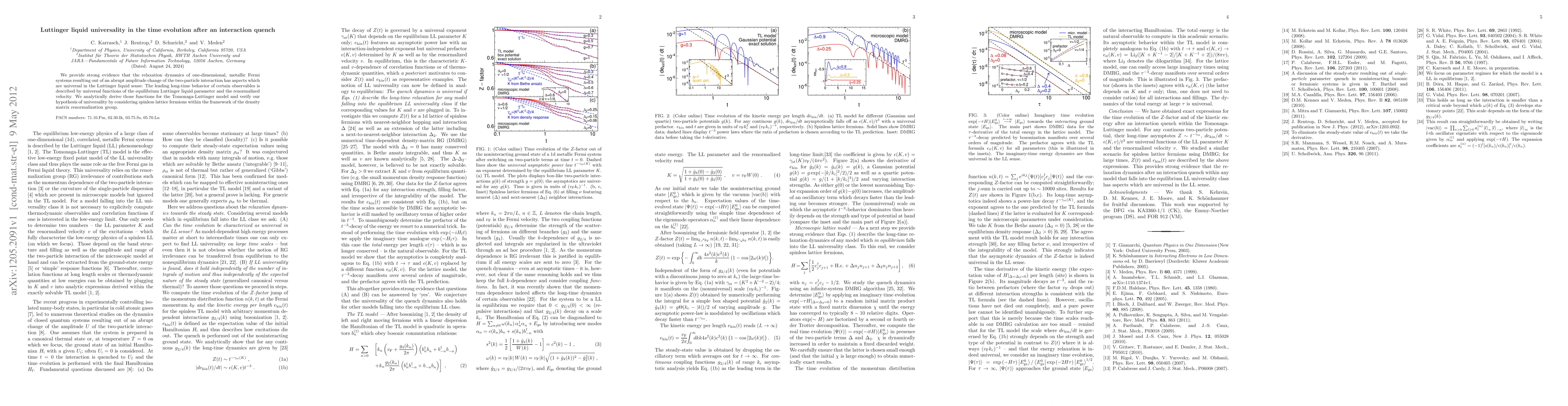 Researchers found that certain observables in one-dimensional metallic systems exhibit universal behavior after an interaction quench, related to the Luttinger liquid parameter and renormalized velocity. This suggests a non-unique relaxation dynamics.