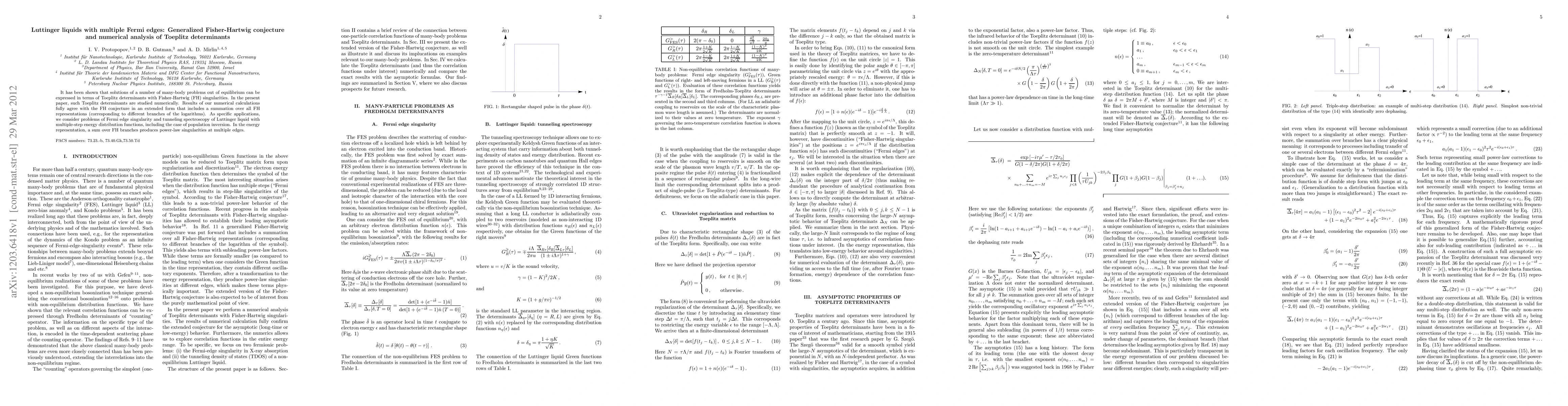 This paper numerically investigates Toeplitz determinants with Fisher-Hartwig singularities, confirming an extended Fisher-Hartwig conjecture that includes summation over multiple FH representations. It applies these findings to Luttinger liquids with multiple Fermi edges, revealing power-law singularities at various energy edges.