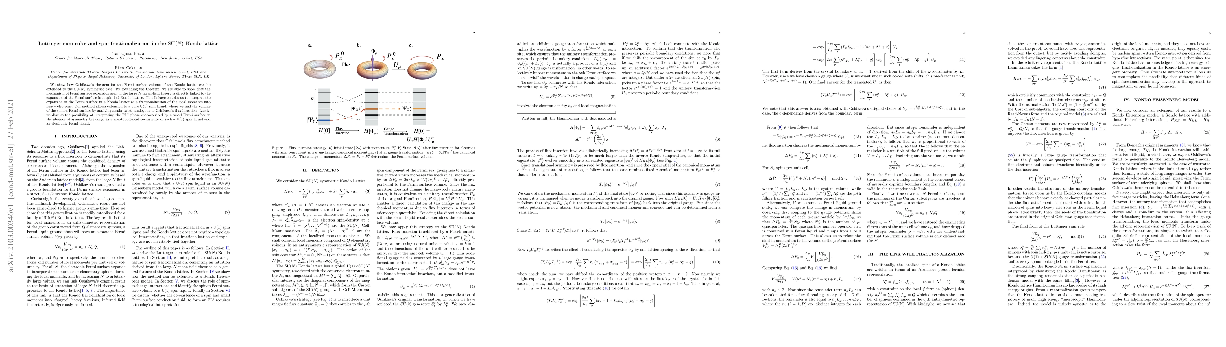 Researchers extend Oshikawa's theorem to SU(N) Kondo lattice, linking Fermi surface expansion to spin fractionalization into heavy electrons. They also explore implications for a U(1) spin liquid phase.