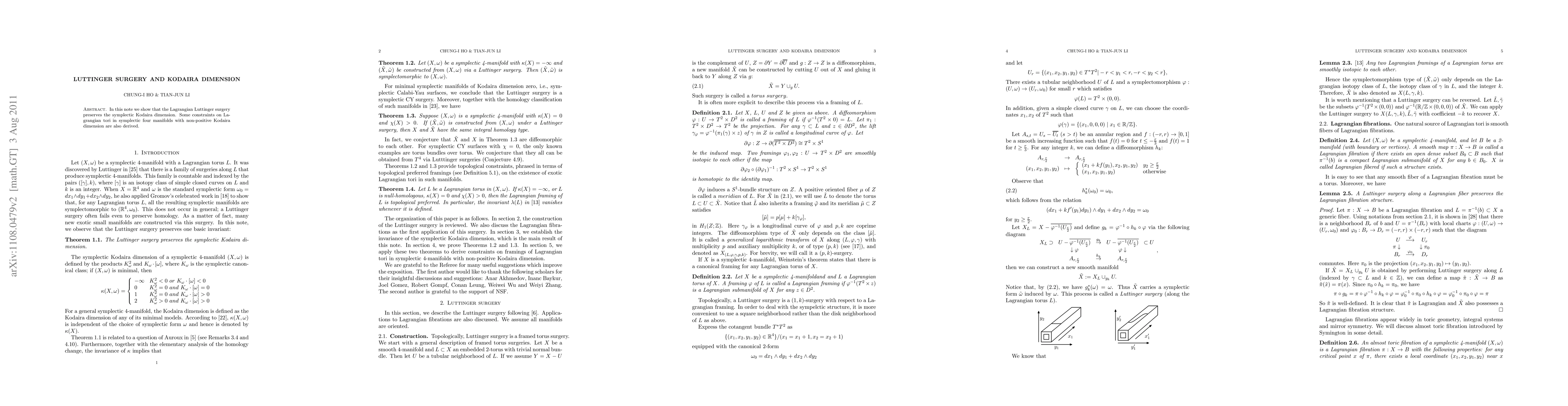 In this note we show that the Lagrangian Luttinger surgery preserves the symplectic Kodaira dimension. Some constraints on Lagrangian tori in symplectic four manifolds with non-positive Kodaira dimension are also derived.