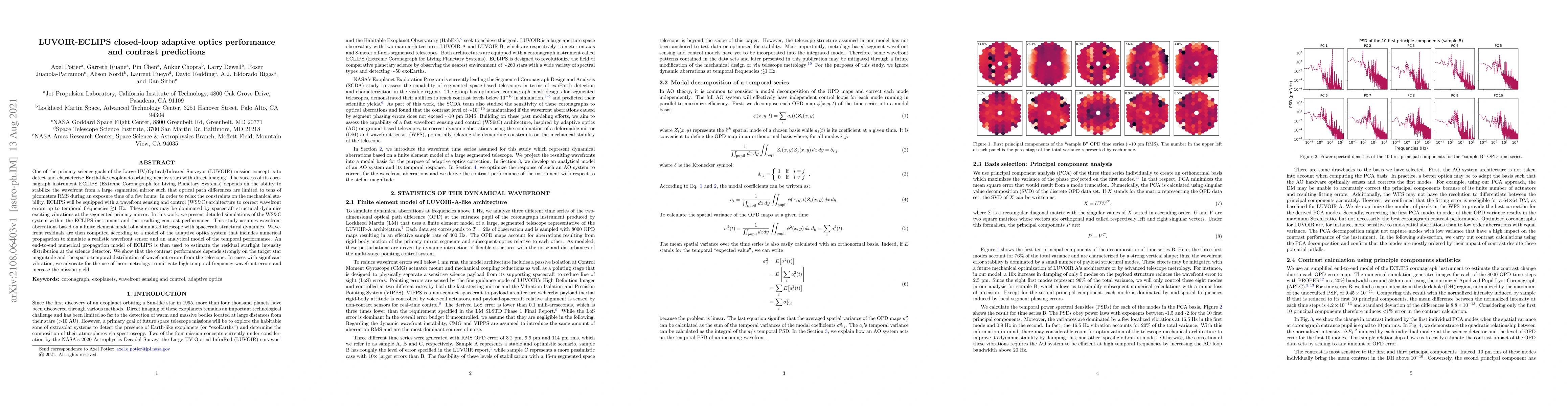 This paper presents simulations of the LUVOIR mission's ECLIPS coronagraph's closed-loop adaptive optics system, predicting its performance in stabilizing wavefronts and achieving high contrast for detecting Earth-like exoplanets. The study finds that contrast performance is heavily influenced by the target star's magnitude and the distribution of wavefront errors, advocating for laser metrology to mitigate high-frequency errors in cases of significant vibration.