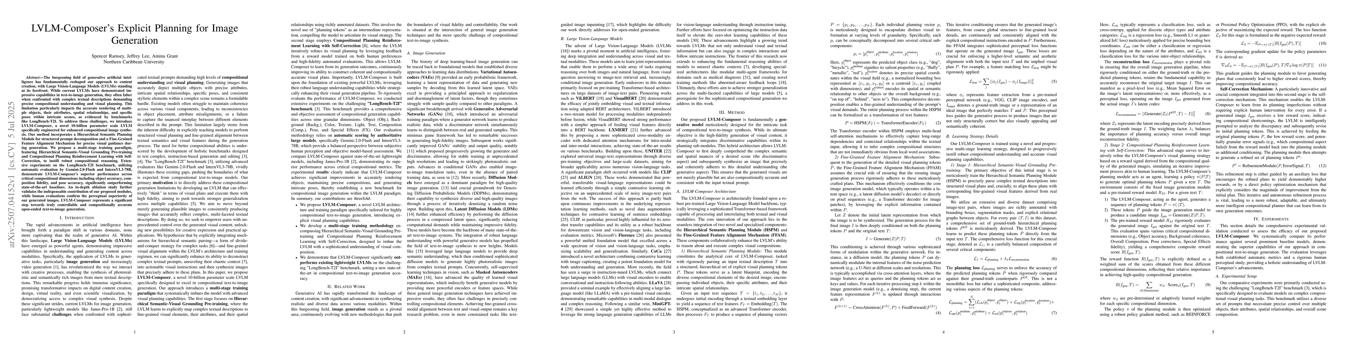 The burgeoning field of generative artificial intelligence has fundamentally reshaped our approach to content creation, with Large Vision-Language Models (LVLMs) standing at its forefront. While current LVLMs have demonstrated impressive capabilities in text-to-image generation, they often falter when confronted with complex textual descriptions demanding precise compositional understanding and visual planning. This limitation particularly impacts the accurate rendering of multiple objects, their attributes, spatial relationships, and specific poses within intricate scenes, as evidenced by benchmarks like LongBench-T2I. To address these challenges, we introduce LVLM-Composer, a novel 10-billion parameter scale LVLM specifically engineered for enhanced compositional image synthesis. Our method incorporates a Hierarchical Semantic Planning Module for structured prompt decomposition and a Fine-Grained Feature Alignment Mechanism for precise visual guidance during generation. We propose a multi-stage training paradigm, featuring Hierarchical Semantic-Visual Grounding Pre-training and Compositional Planning Reinforcement Learning with Self-Correction, to instill robust compositional reasoning. Extensive experiments on the LongBench-T2I benchmark, utilizing automatic evaluation by Gemini-2.0-Flash and InternVL3-78B, demonstrate LVLM-Composer's superior performance across critical compositional dimensions including object accuracy, composition fidelity, and pose accuracy, significantly outperforming state-of-the-art baselines. An in-depth ablation study further validates the indispensable contribution of our proposed modules, while human evaluations confirm the perceptual superiority of our generated images. LVLM-Composer represents a significant step towards truly controllable and compositionally accurate open-ended text-to-image generation.