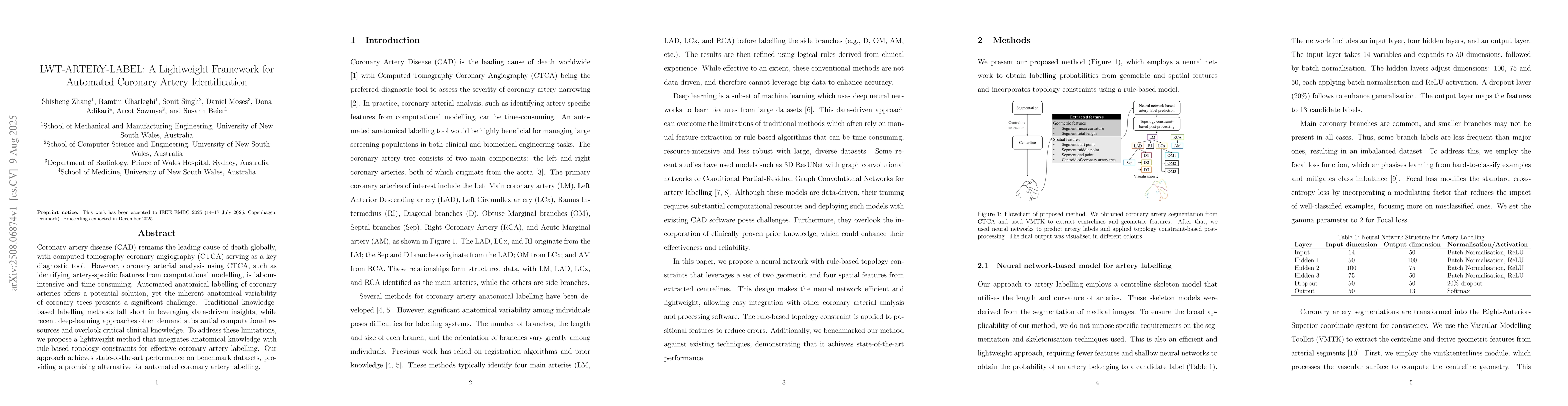 Coronary artery disease (CAD) remains the leading cause of death globally, with computed tomography coronary angiography (CTCA) serving as a key diagnostic tool. However, coronary arterial analysis using CTCA, such as identifying artery-specific features from computational modelling, is labour-intensive and time-consuming. Automated anatomical labelling of coronary arteries offers a potential solution, yet the inherent anatomical variability of coronary trees presents a significant challenge. Traditional knowledge-based labelling methods fall short in leveraging data-driven insights, while recent deep-learning approaches often demand substantial computational resources and overlook critical clinical knowledge. To address these limitations, we propose a lightweight method that integrates anatomical knowledge with rule-based topology constraints for effective coronary artery labelling. Our approach achieves state-of-the-art performance on benchmark datasets, providing a promising alternative for automated coronary artery labelling.