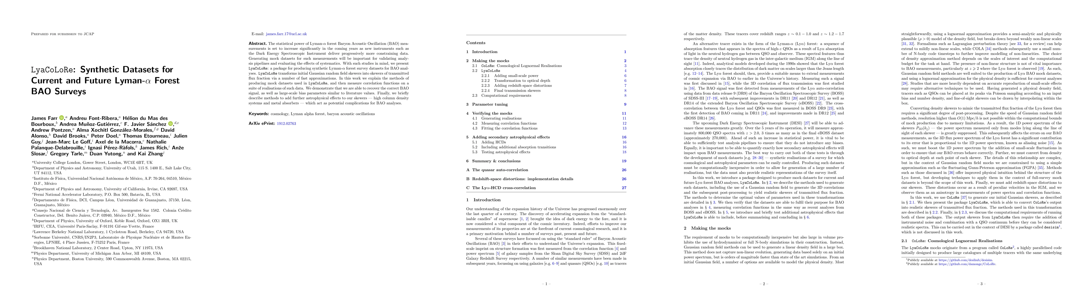 New software tool LyaCoLoRe generates synthetic datasets for Lyman-${eta}$ forest BAO surveys to improve analysis pipeline validation and astrophysical effects assessment.