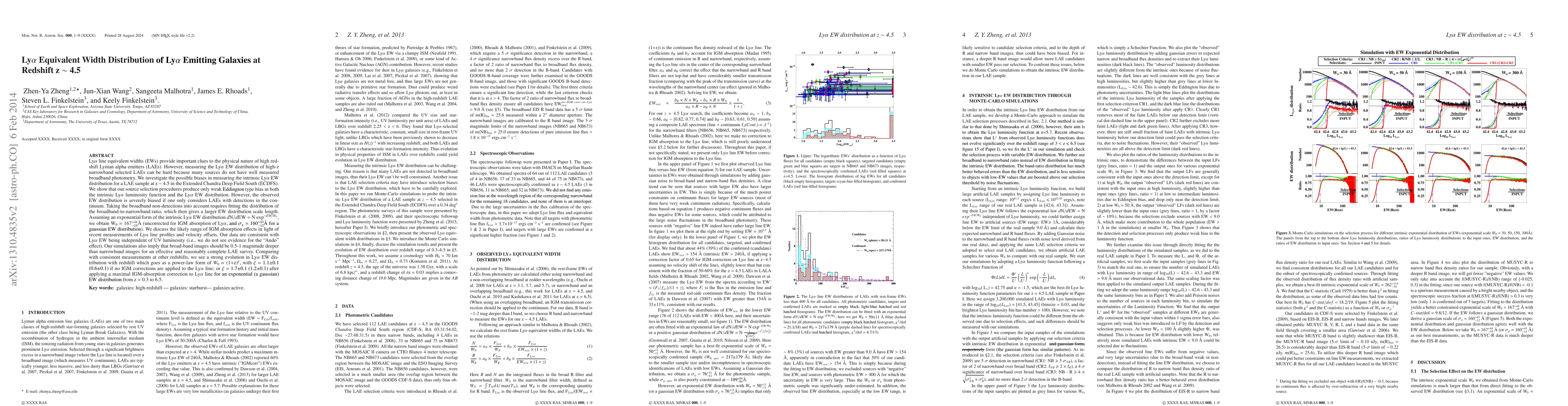 This study examines the Ly{\alpha} equivalent width (EW) distribution of Ly{\alpha} emitting galaxies (LAEs) at redshift z $\sim$ 4.5, finding weak biases in intrinsic luminosity and EW distribution. The observed EW distribution shows significant bias without considering broadband non-detections, which requires fitting the broadband-to-narrowband ratio for a larger EW distribution scale length.