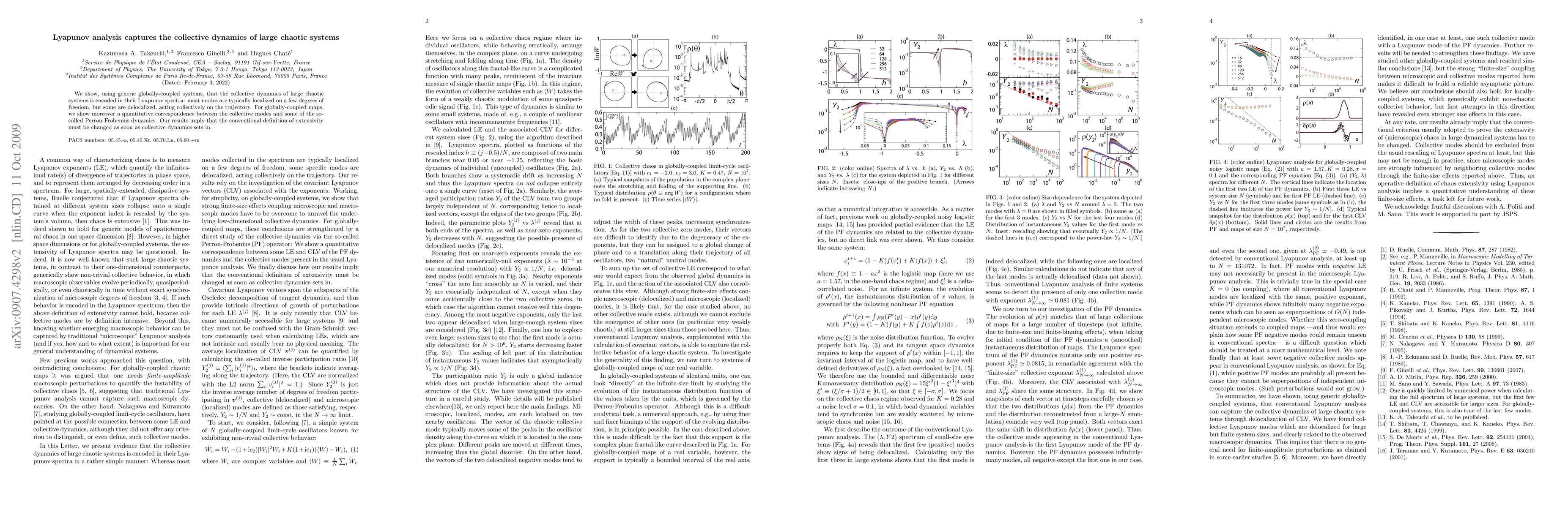 We show, using generic globally-coupled systems, that the collective dynamics of large chaotic systems is encoded in their Lyapunov spectra: most modes are typically localized on a few degrees of freedom, but some are delocalized, acting collectively on the trajectory. For globally-coupled maps, we show moreover a quantitative correspondence between the collective modes and some of the so-called Perron-Frobenius dynamics. Our results imply that the conventional definition of extensivity must be changed as soon as collective dynamics sets in.