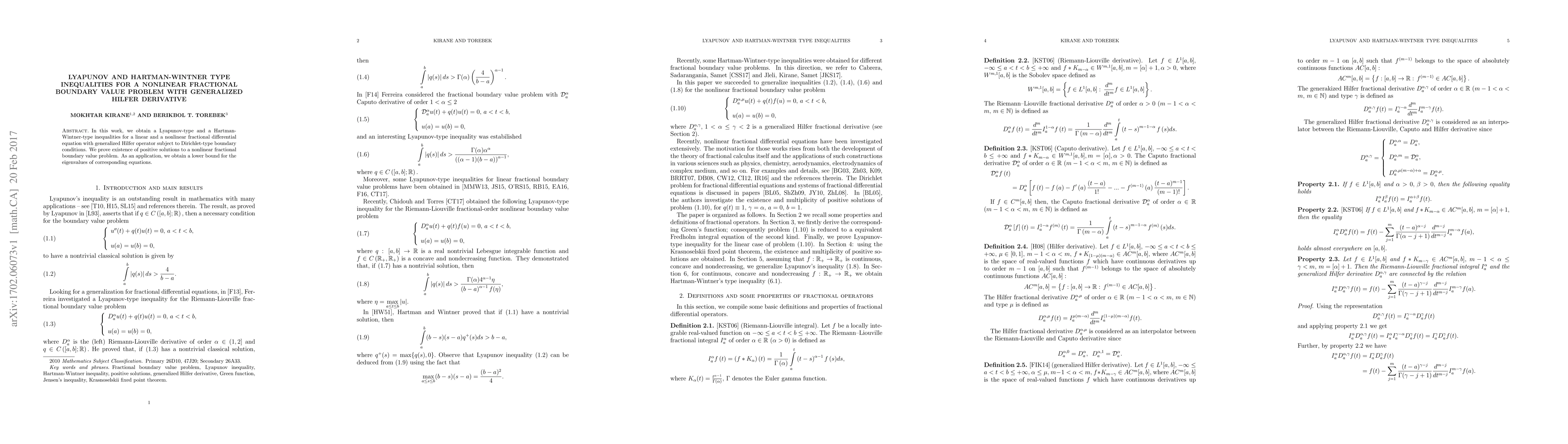 In this work, we obtain a Lyapunov-type and a Hartman-Wintner-type inequalities for a linear and a nonlinear fractional differential equation with generalized Hilfer operator subject to Dirichlet-type boundary conditions. We prove existence of positive solutions to a nonlinear fractional boundary value problem. As an application, we obtain a lower bound for the eigenvalues of corresponding equations.