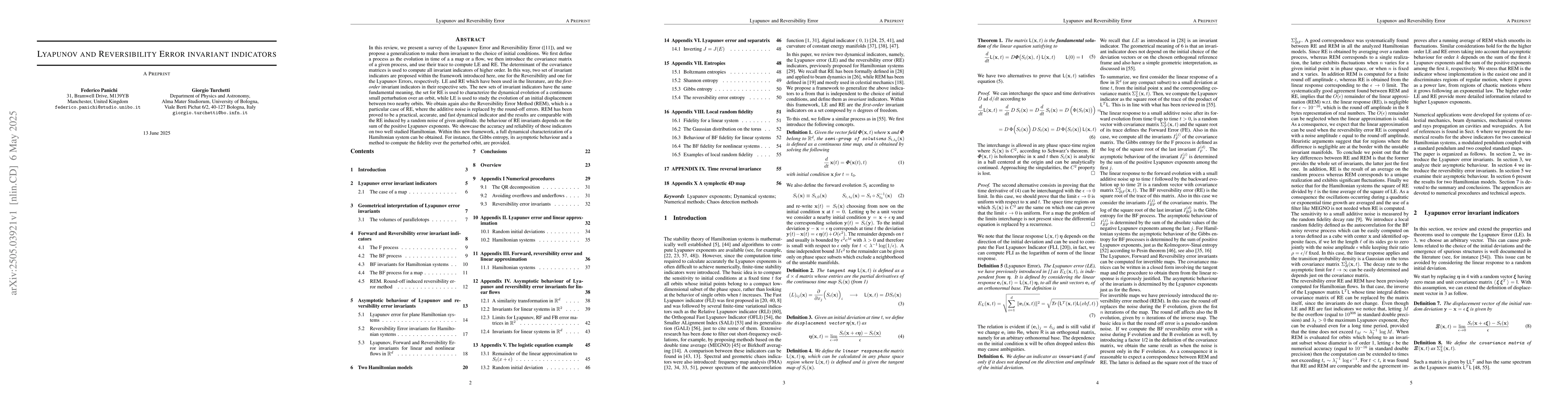 This paper introduces new invariant indicators for Lyapunov Error and Reversibility Error, which provide a more comprehensive understanding of dynamical systems, including Hamiltonian systems.