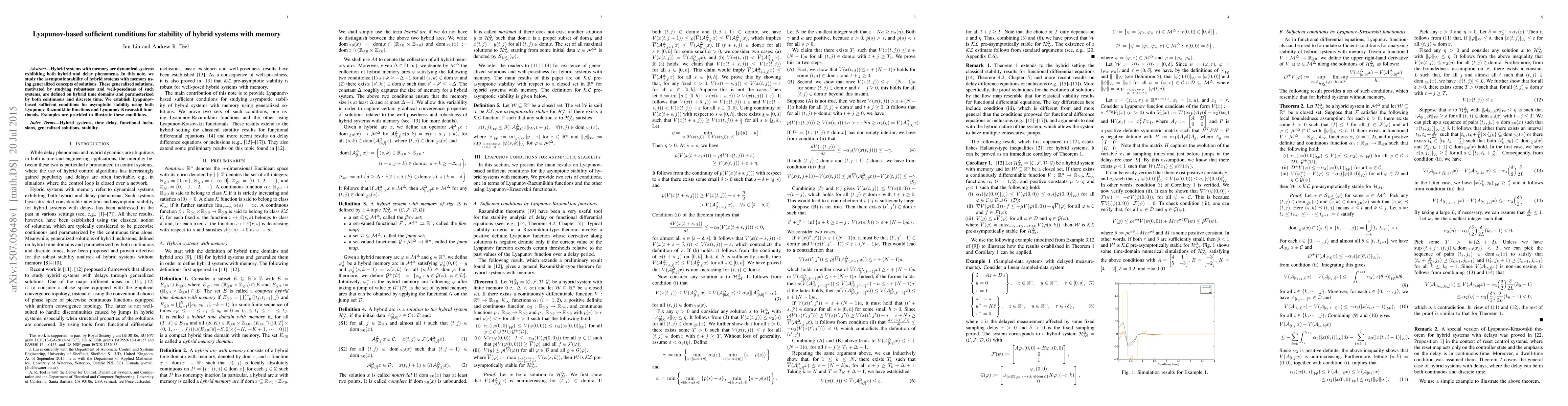 This paper presents Lyapunov-based sufficient conditions for the asymptotic stability of hybrid systems with memory, employing generalized solutions defined on hybrid time domains and utilizing Lyapunov-Razumikhin functions and Lyapunov-Krasovskii functionals. Examples are provided to demonstrate the applicability of these conditions.