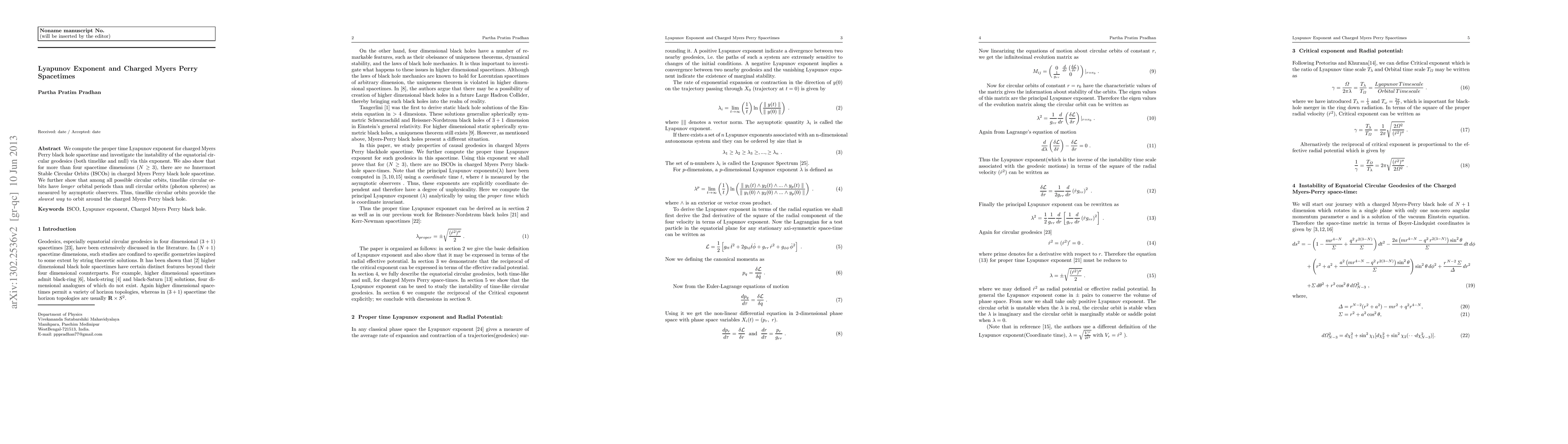 This paper computes the Lyapunov exponent for charged Myers-Perry black holes to study the instability of equatorial circular geodesics and finds no Innermost Stable Circular Orbits for dimensions greater than four. It also shows that timelike orbits have longer periods than null orbits, indicating the slowest way to orbit around such black holes.